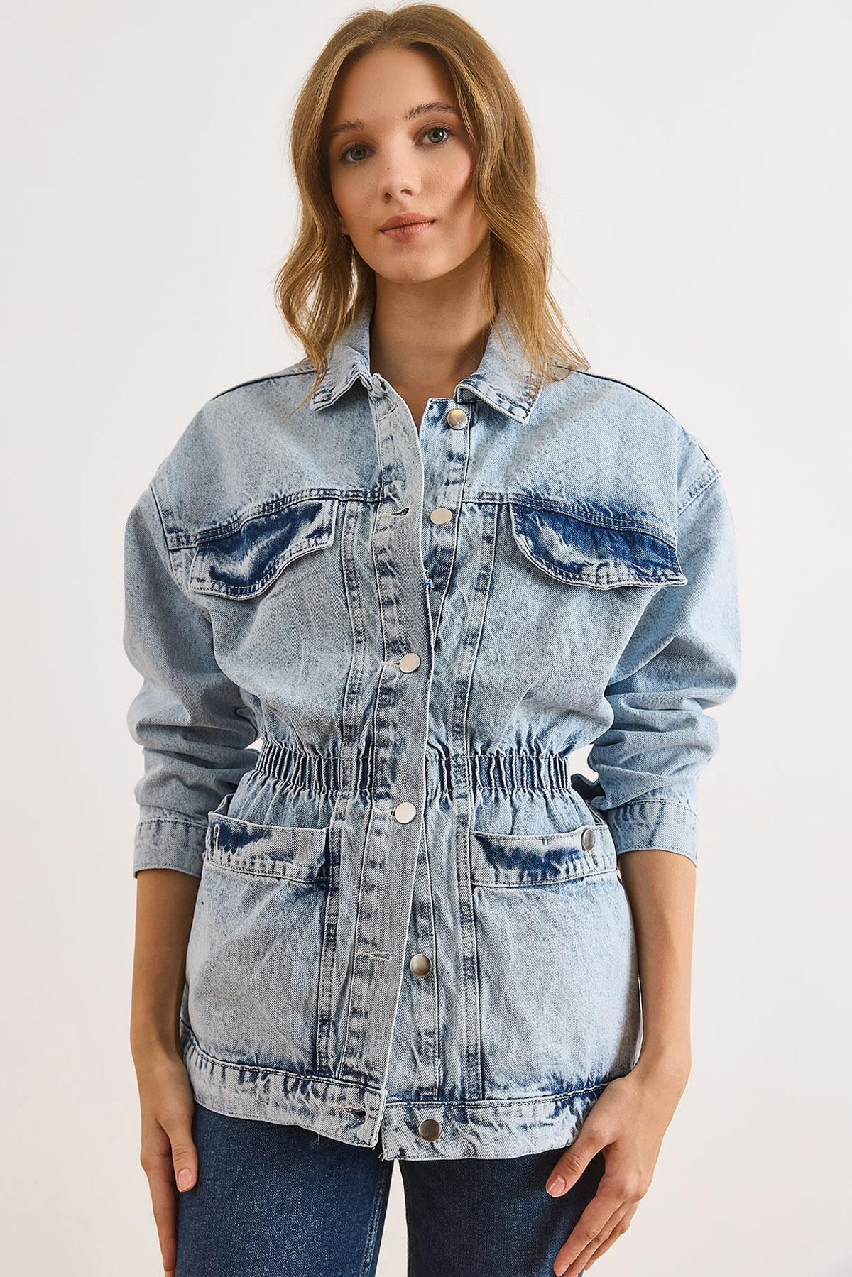 4 Cepli Beli Gipeli Uzun Denim Ceket Açık Mavi (CKT-19000473)