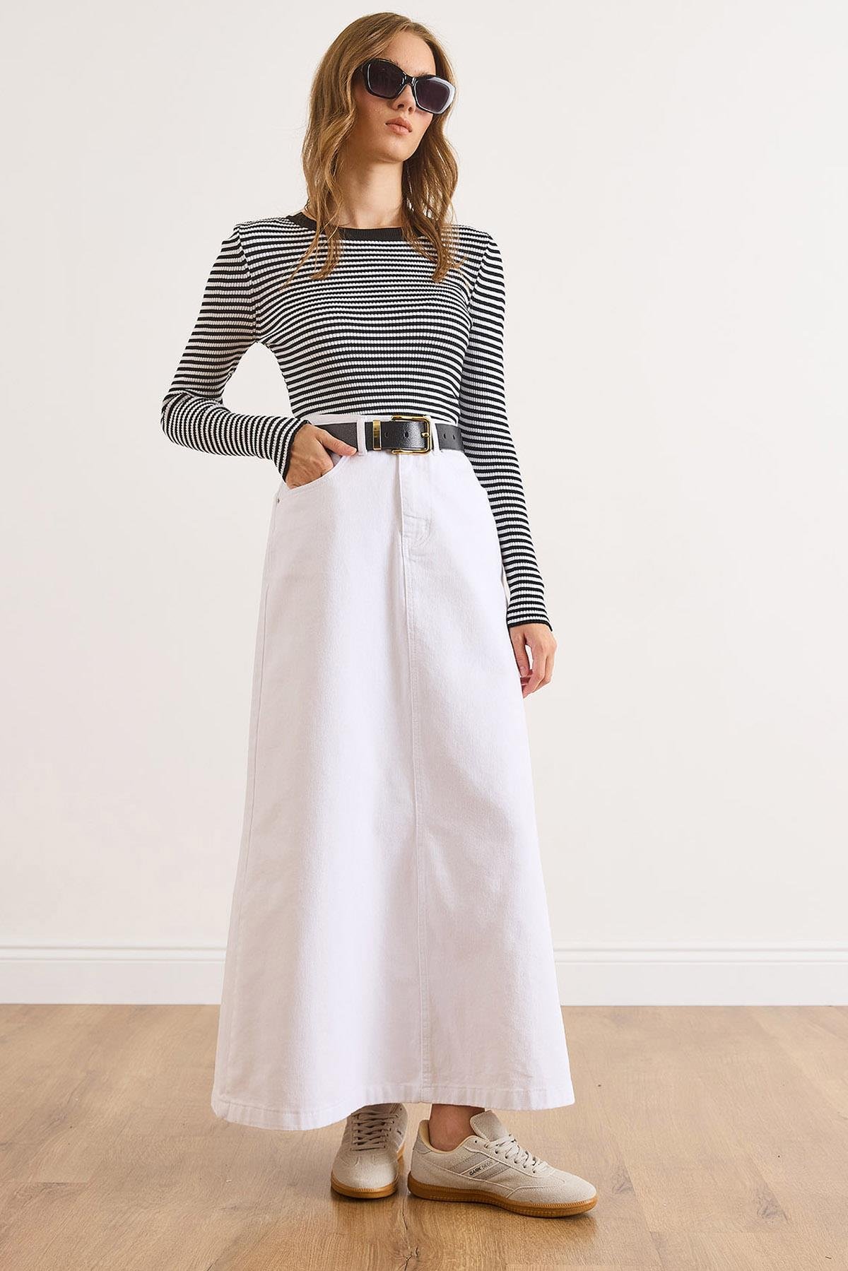 A Form Cepli Maxi Denim Etek Beyaz (ETK-19000357)