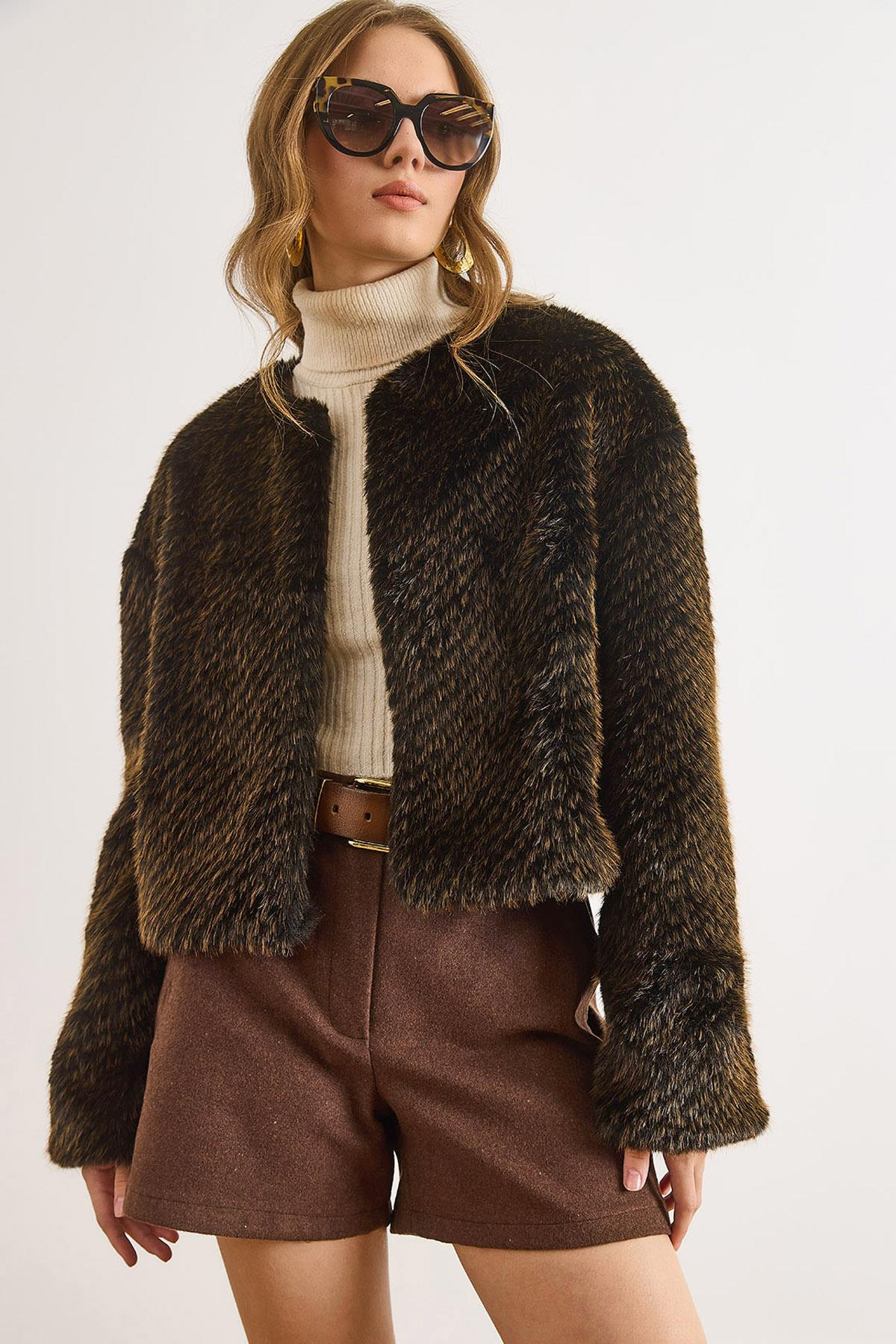 Astarlı Kısa Tüylü Suni Kürk Ceket Kahverengi (CKT-19000490)