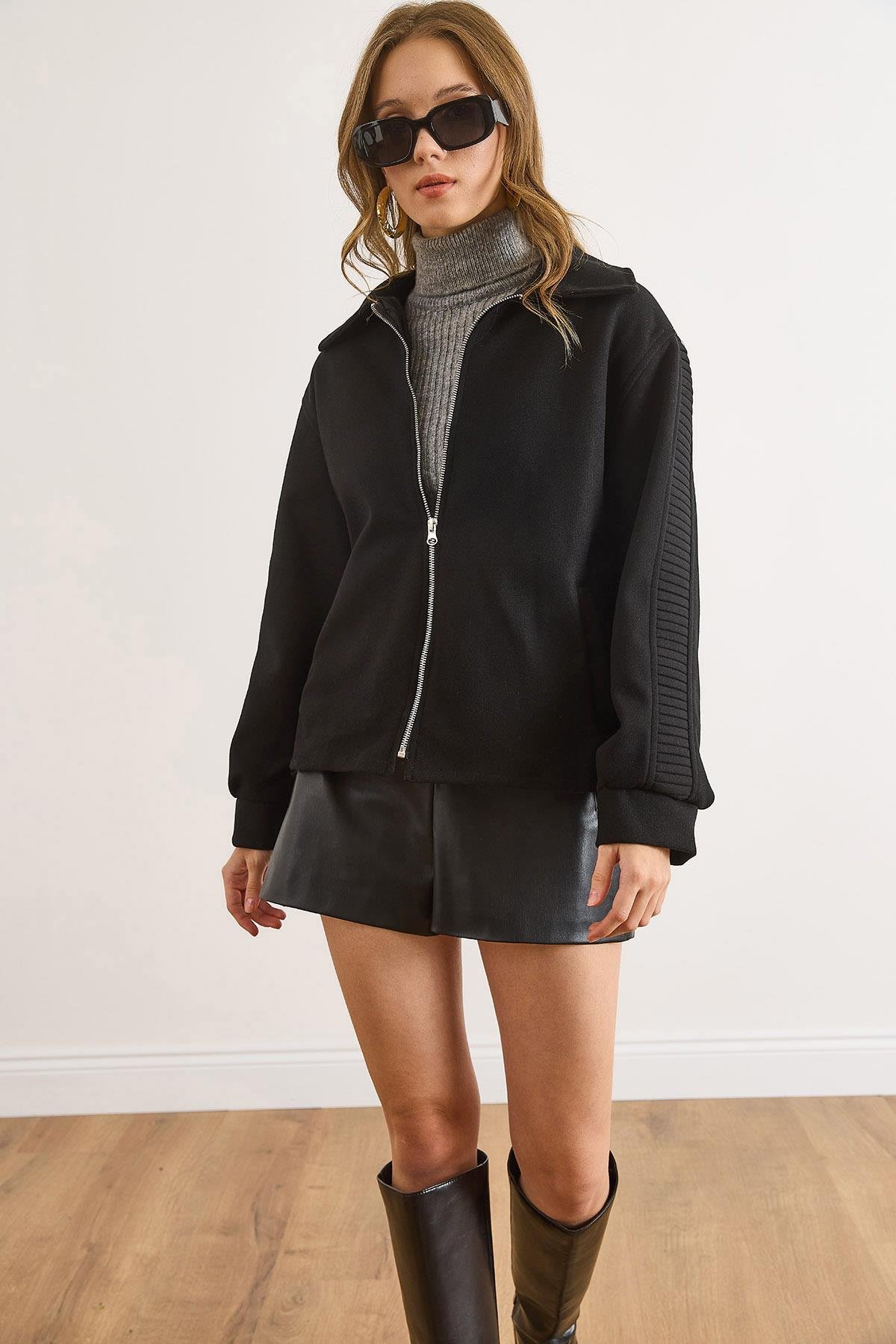 Astarlı Kol Sırt Detaylı Kaşe Ceket Siyah (CKT-19000487)