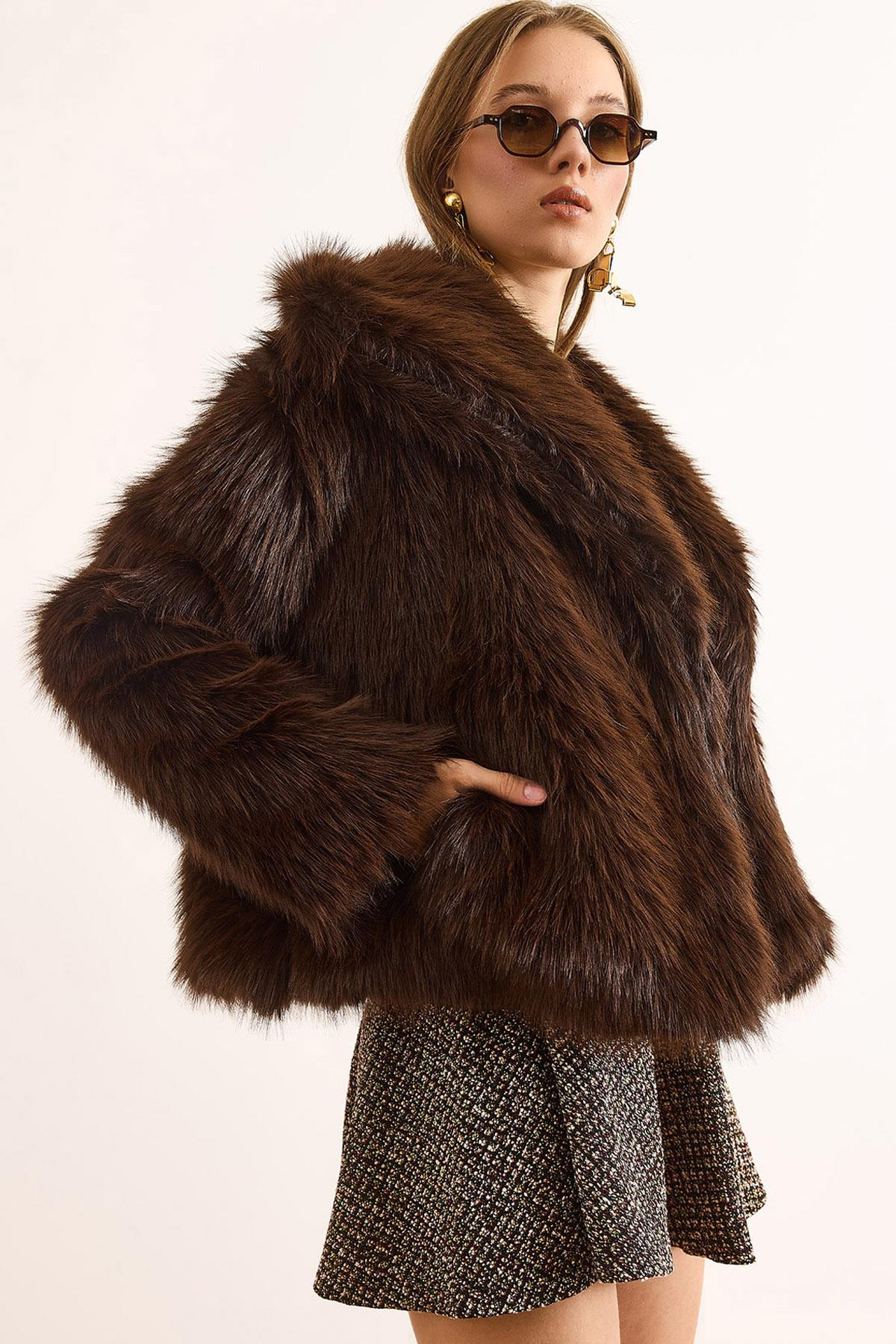 Astarlı Suni Kürk Mont Kahverengi (MNT-19000049)