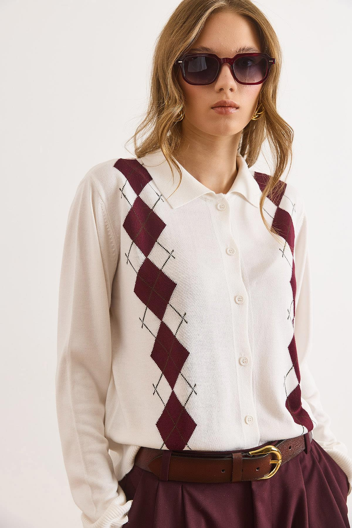 Baklava Desen Yumuşak Dokulu Triko Hırka Beyaz (HRK-19000415)