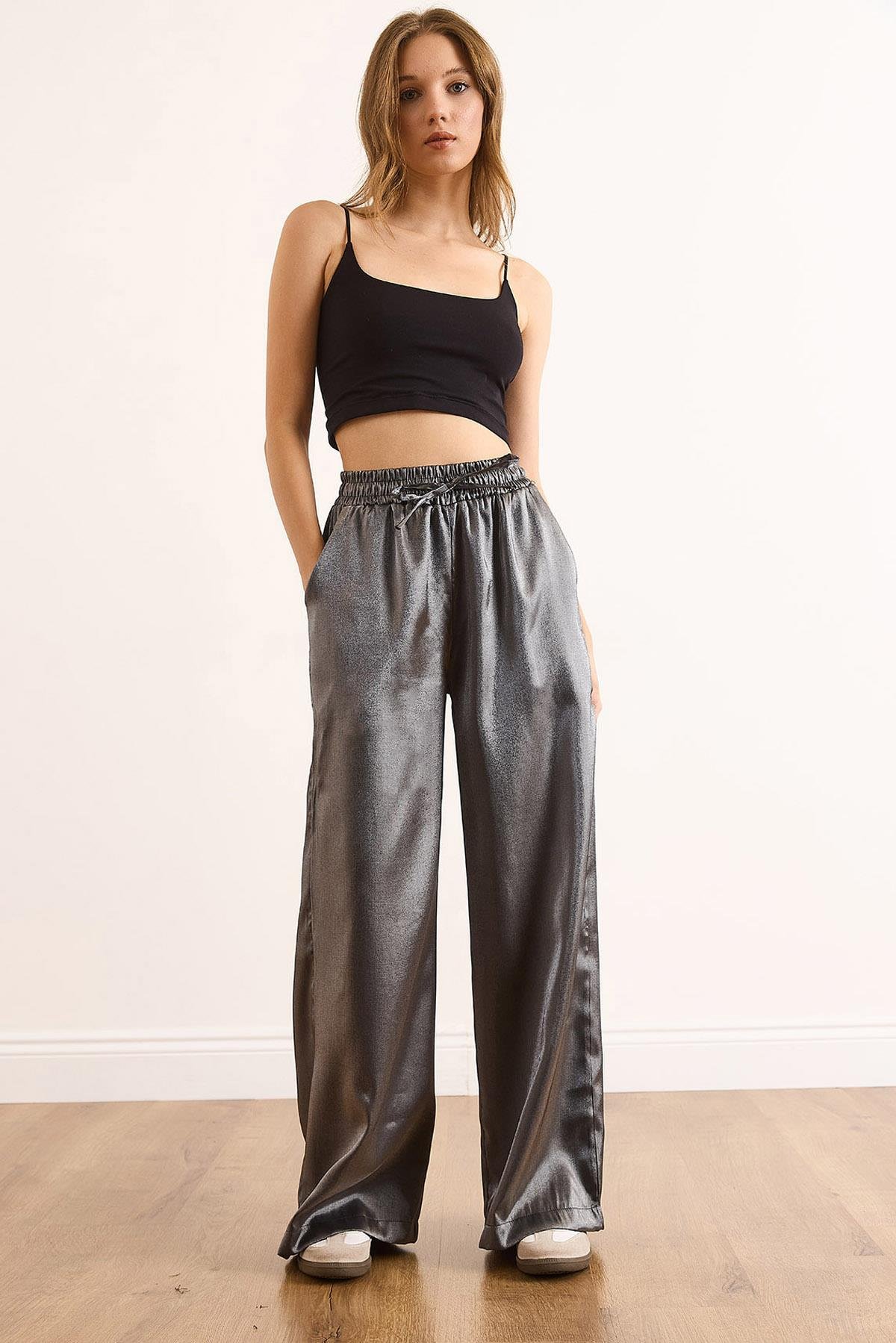 Beli Lastikli Cepli Saten Pantolon Antrasit (PNT-19000364)