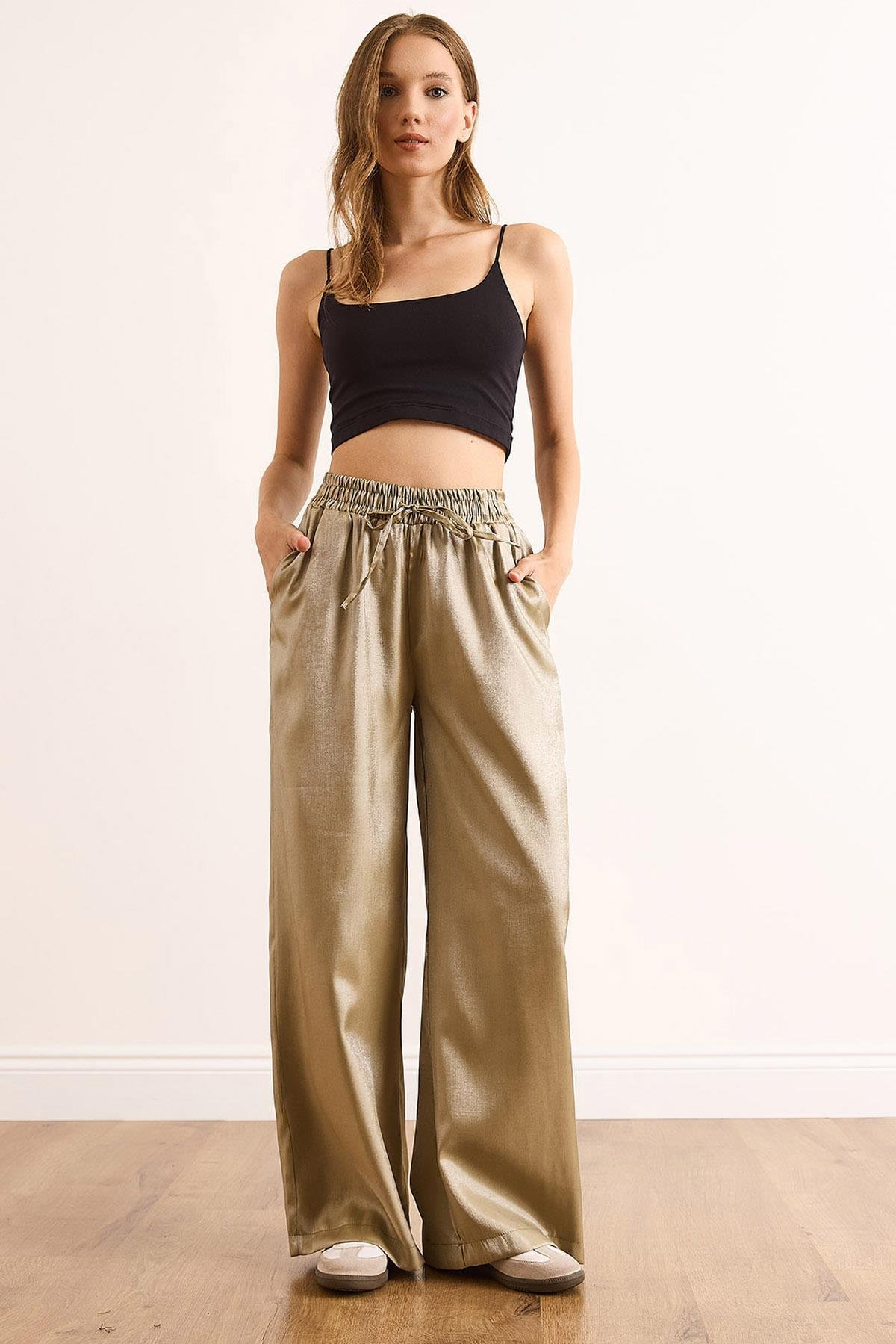 Beli Lastikli Cepli Saten Pantolon Haki (PNT-19000364)