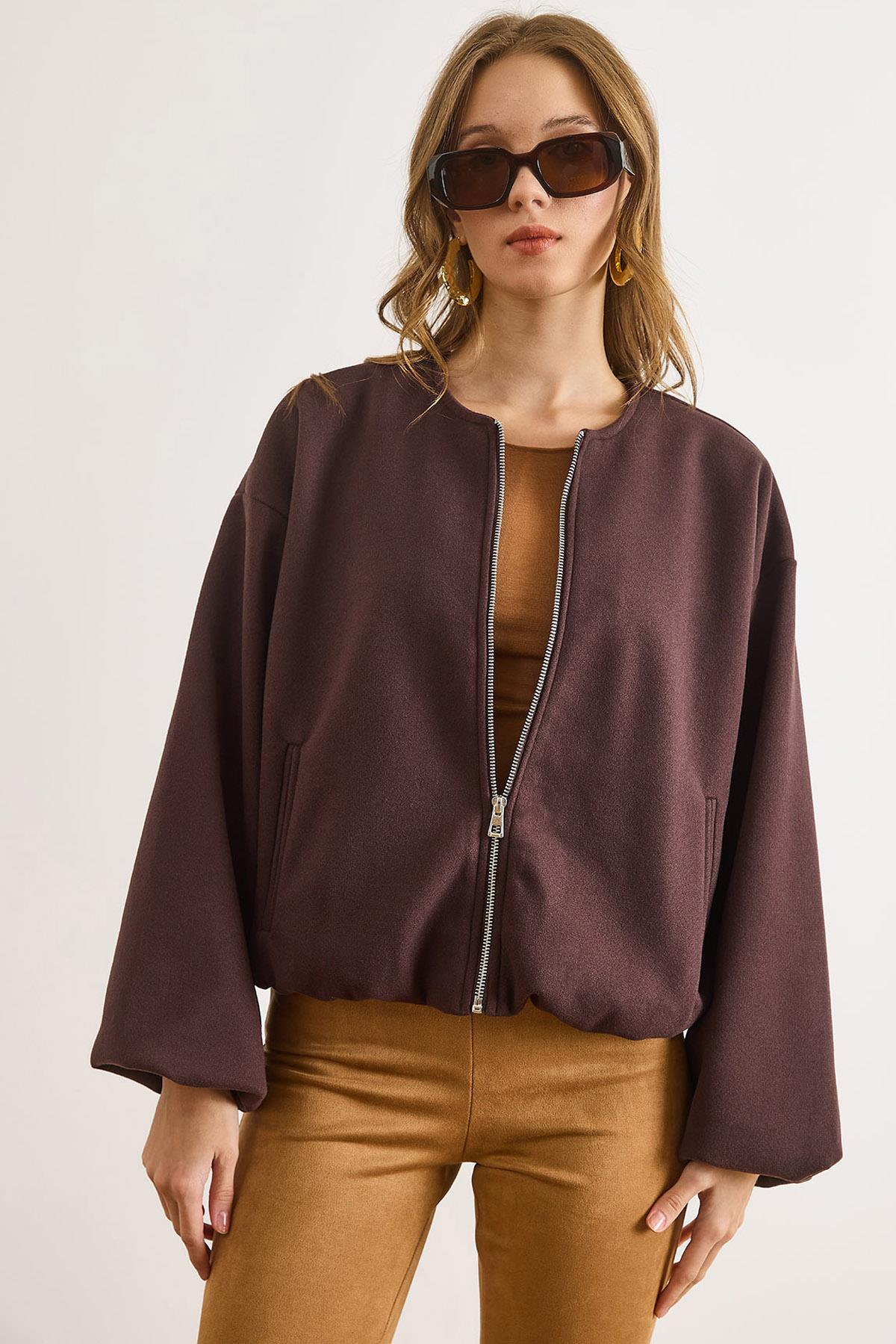Bisiklet Yaka Cepli Astarlı Kaşe Ceket Kahverengi (CKT-19000489)