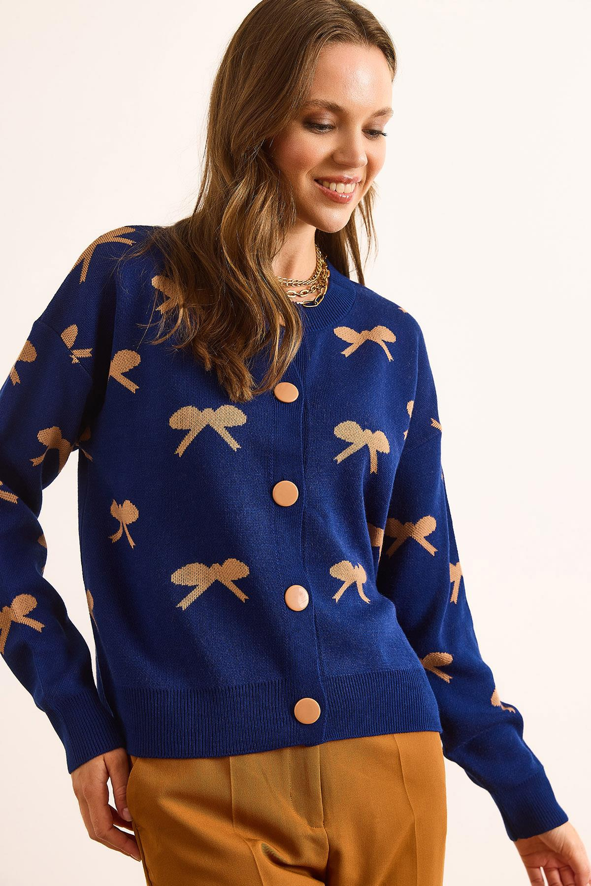Bisiklet Yaka Fiyonk Detaylı Düğmeli Hırka Lacivert (HRK-19000363)