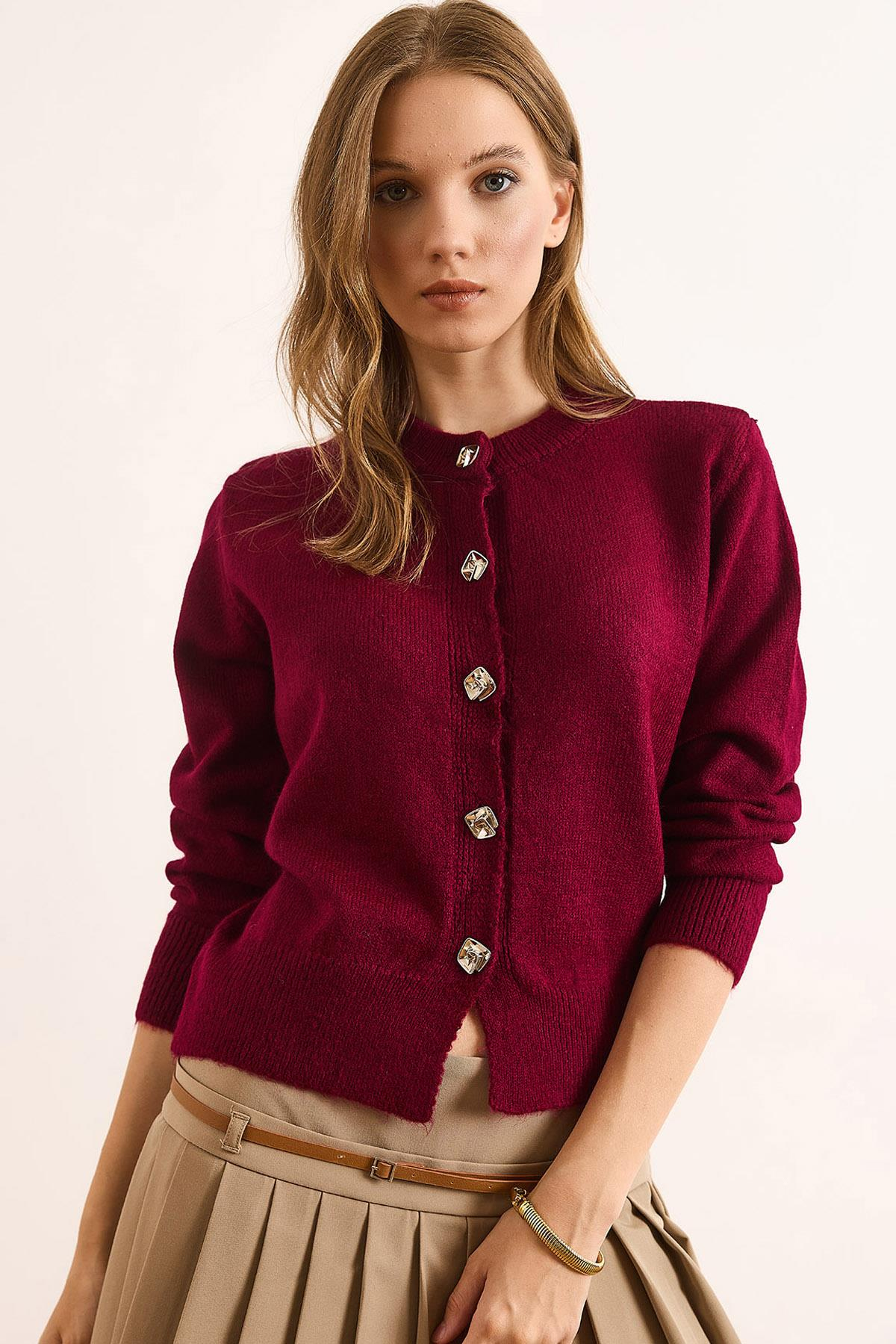 Bisiklet Yaka Yumuşak Dokulu Basic Hırka Bordo (HRK-19000389)