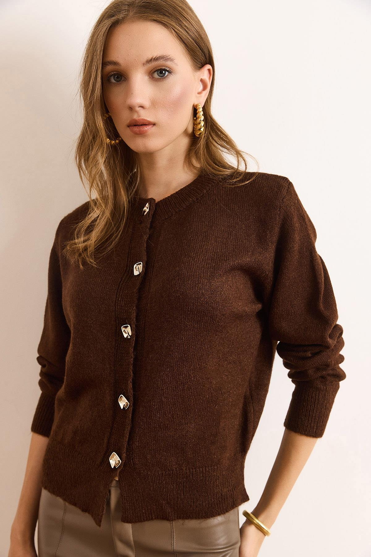 Bisiklet Yaka Yumuşak Dokulu Basic Hırka Kahverengi (HRK-19000389)