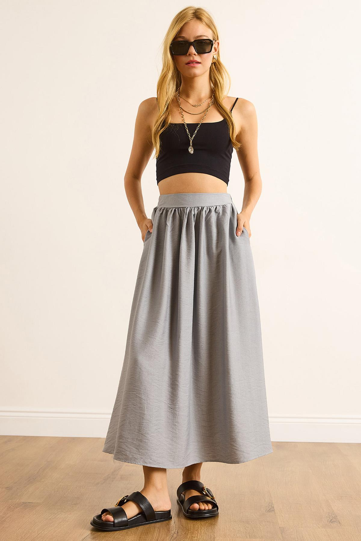 Cepli Dökümlü Uzun Ayrobin Etek Gri (ETK-19000345)