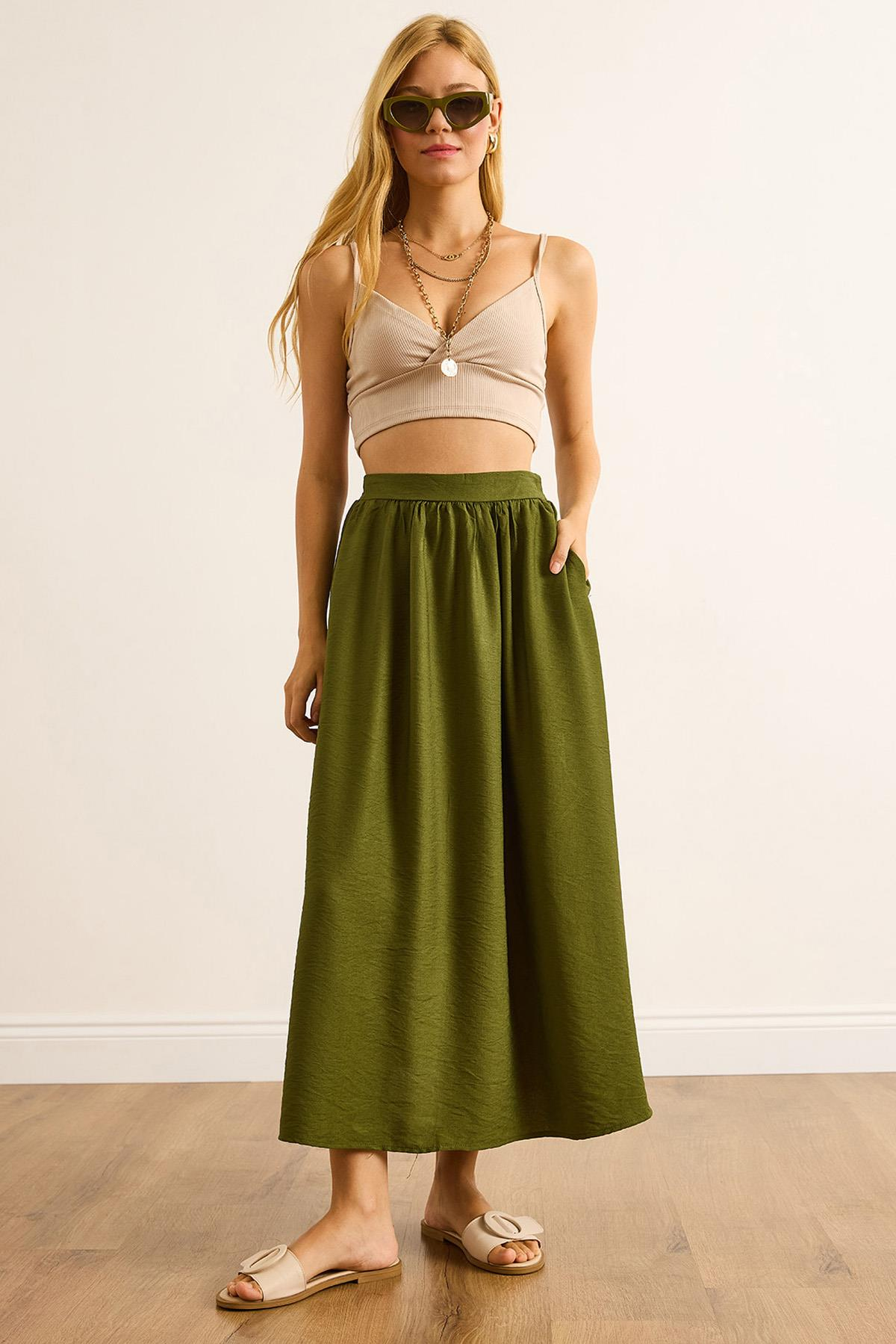 Cepli Dökümlü Uzun Ayrobin Etek Haki (ETK-19000345)