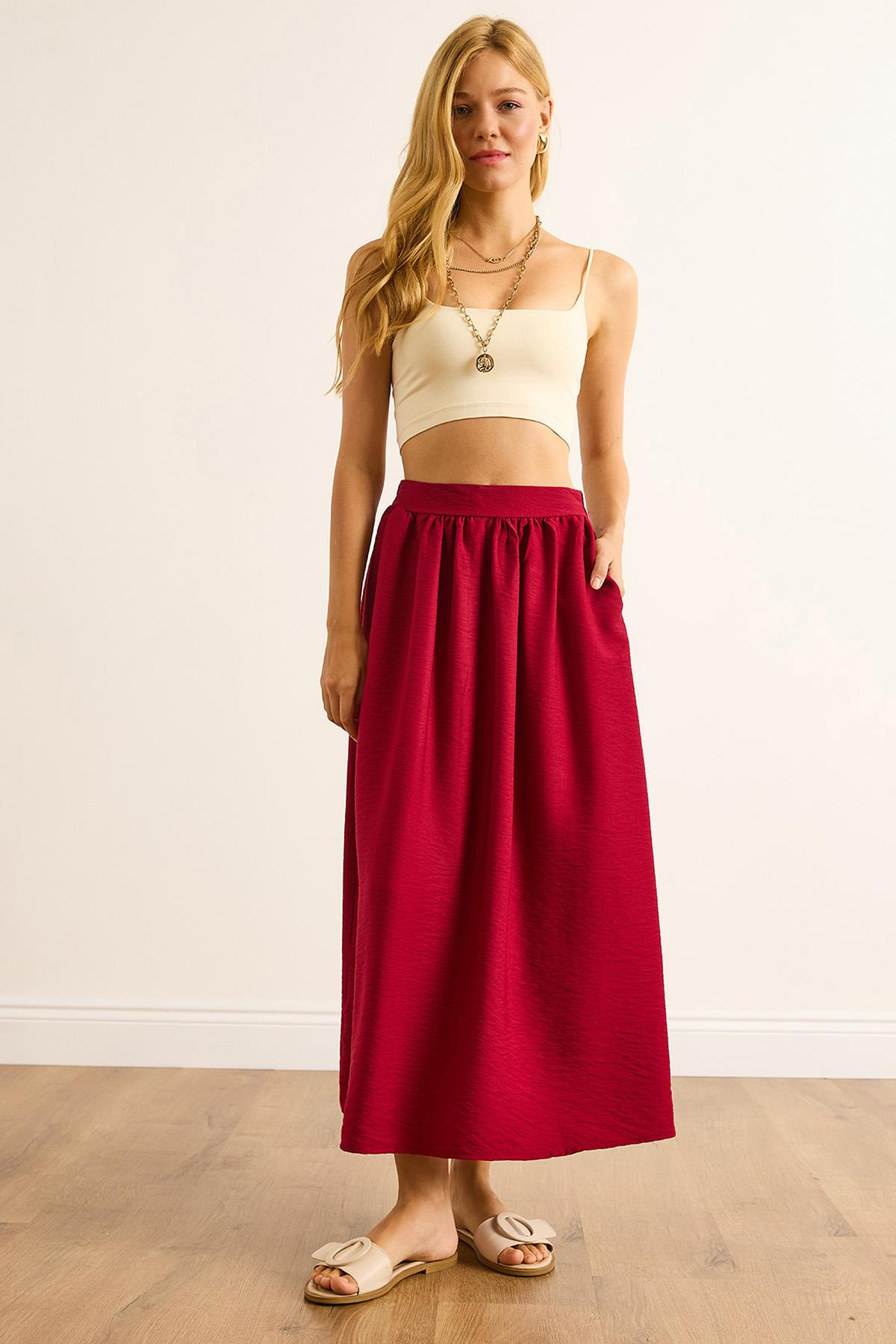 Cepli Dökümlü Uzun Ayrobin Etek Kırmızı (ETK-19000345)