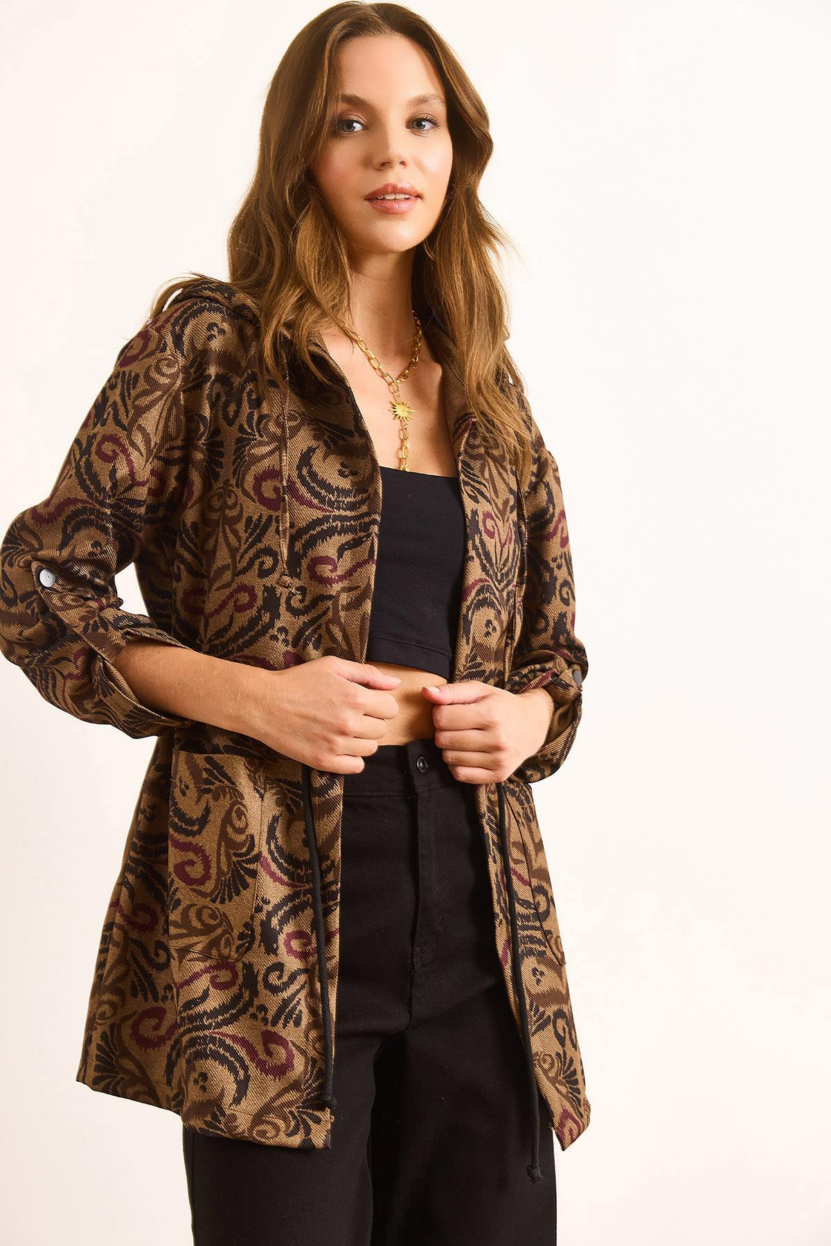 Cepli Kol Katlama Detaylı Kapüşonlu Yün Efekt Ceket Camel (CKT-19000457)