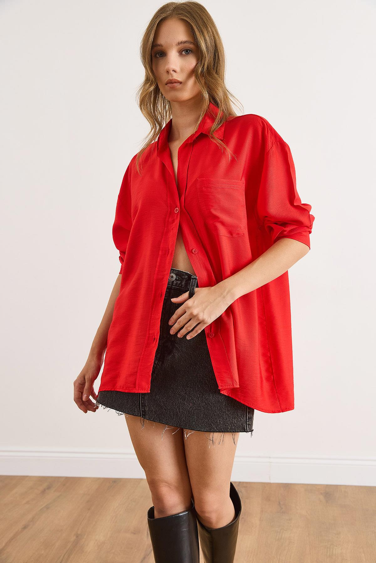 Cepli Oversize Javanes Gömlek Kırmızı (GML-19001395)