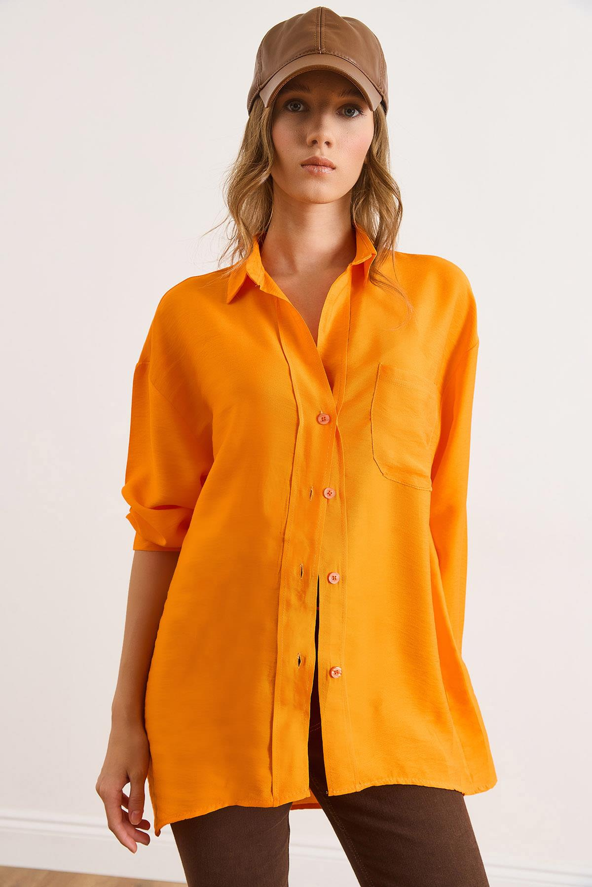 Cepli Oversize Javanes Gömlek Turuncu (GML-19001395)
