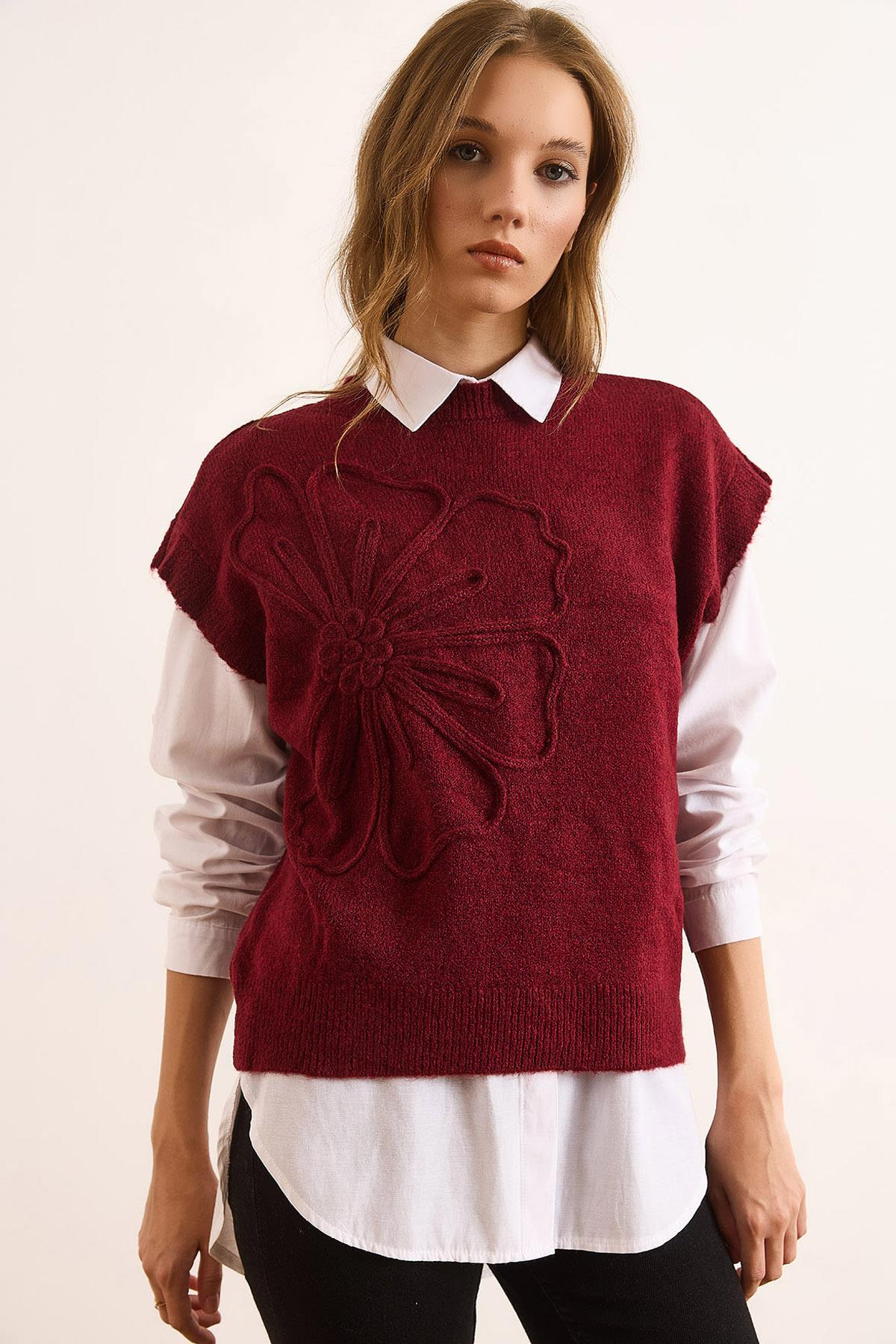 Çiçek Detaylı Yumuşak Dokulu Triko Süveter Bordo (SVT-00000051)