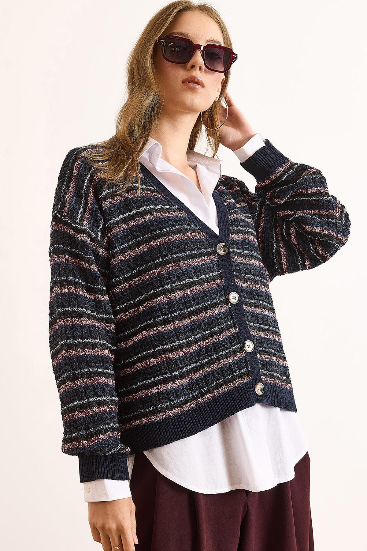 Çizgili Dokulu Triko Hırka Lacivert (HRK-19000374)