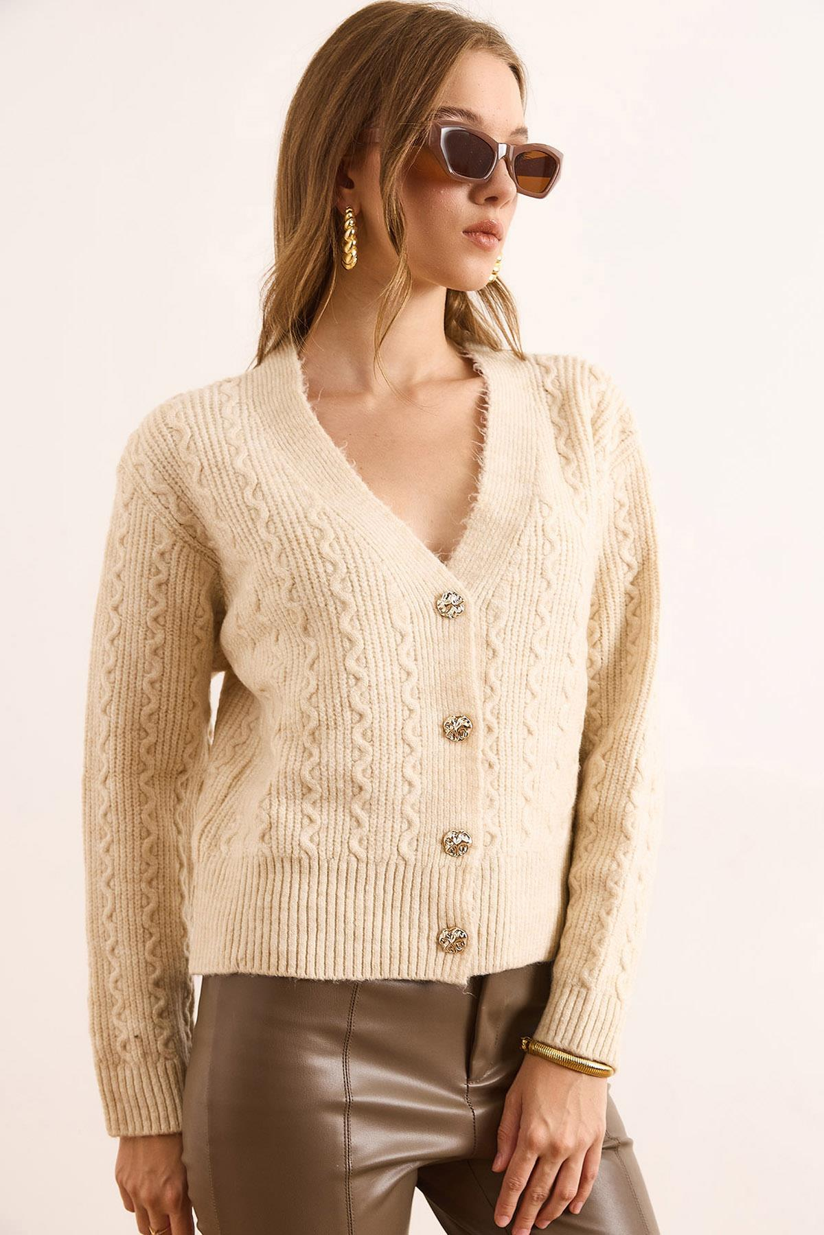 Dalga Detaylı Yumuşak Dokulu Hırka Ekru (HRK-19000386)