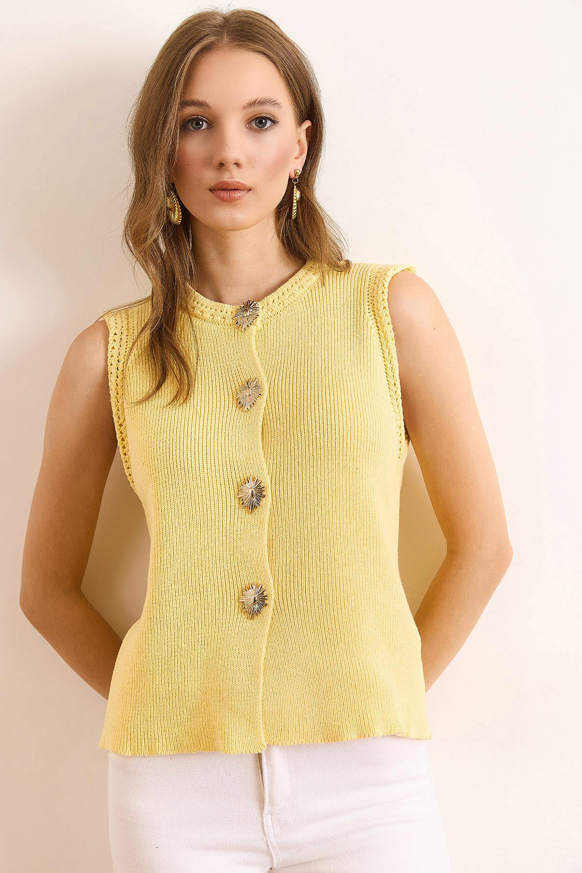 Düğme Detaylı Yumuşak Dokulu Triko Yelek Sarı (YLK-19000086)