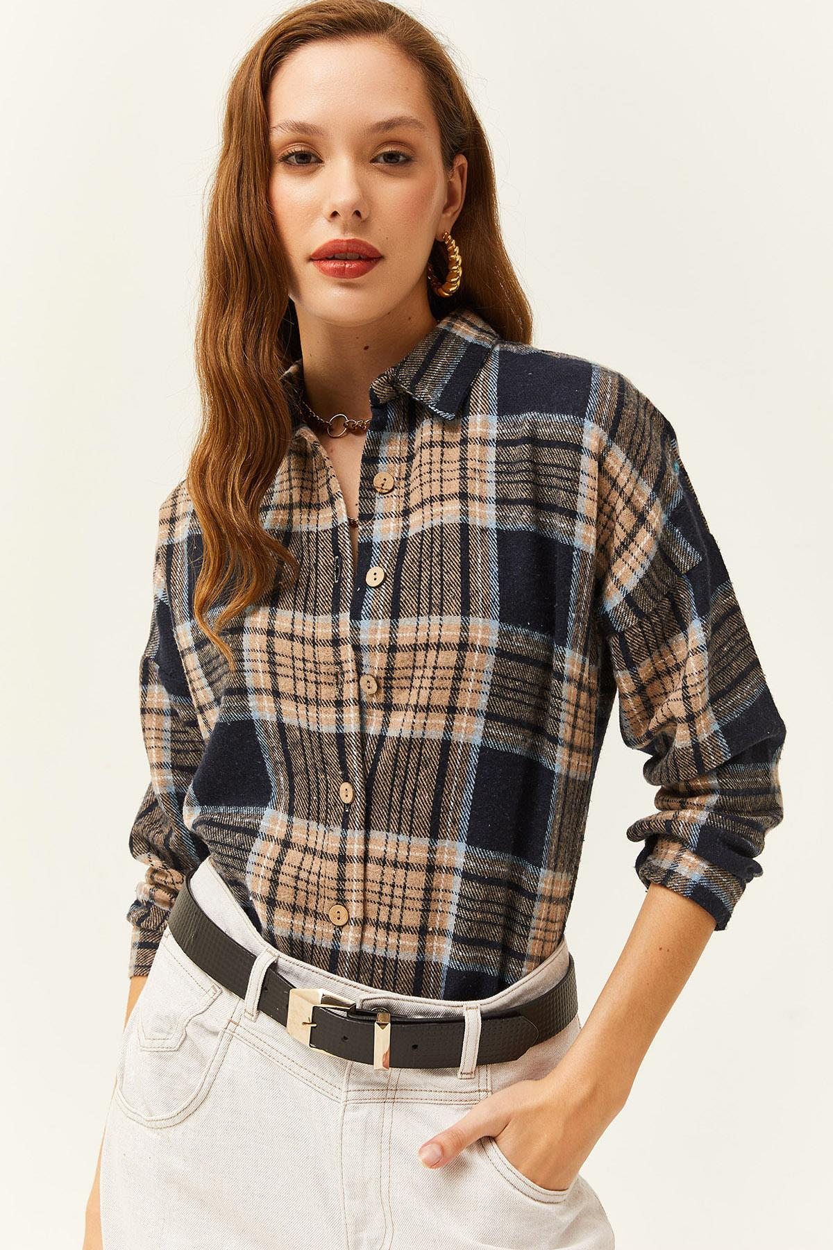 Ekose Oduncu Gömlek Bej Bebe Mavi