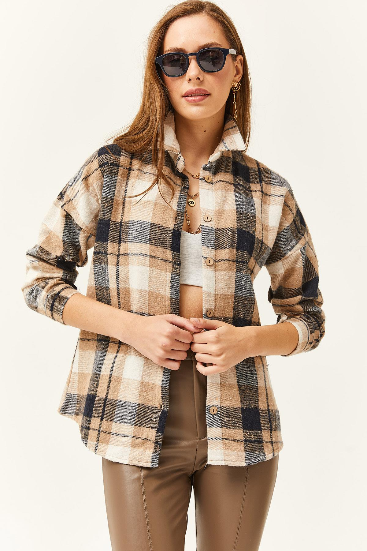 Ekose Oduncu Gömlek Bej Lacivert (GML-19001153)