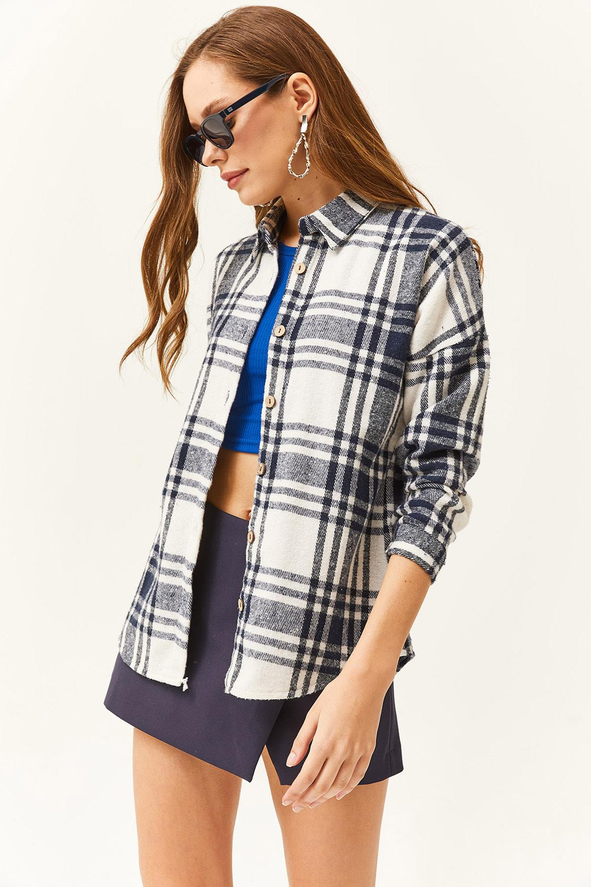 Ekose Oduncu Gömlek Ekru Lacivert (GML-19001153)