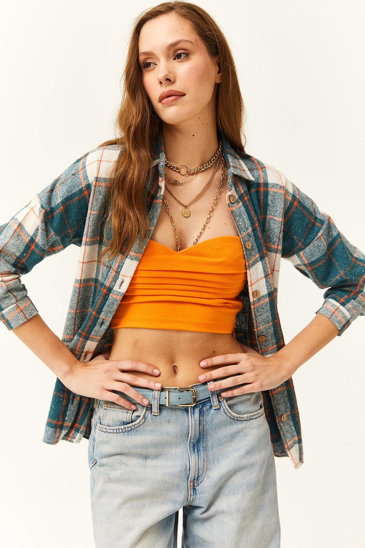 Ekose Oduncu Gömlek Zümrüt Yeşili Turuncu (GML-19001153)
