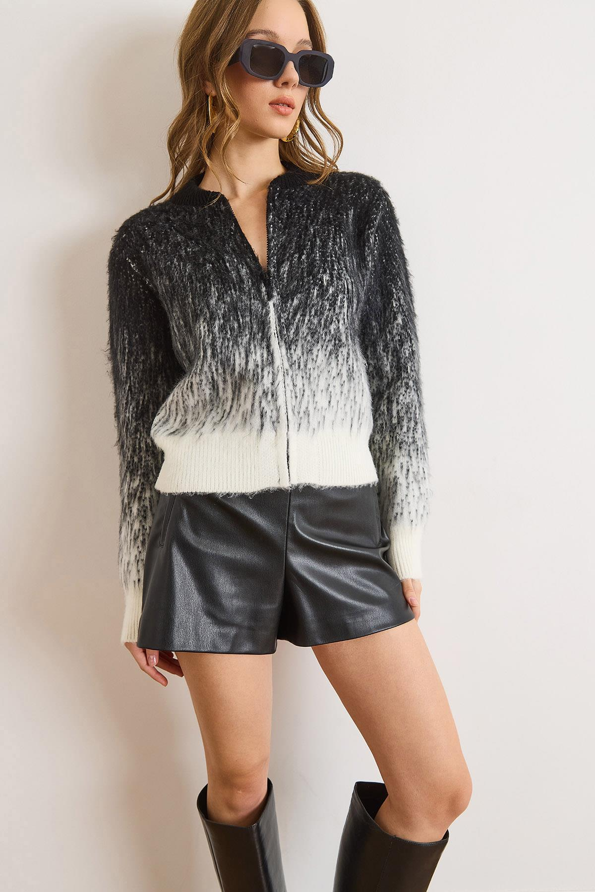 Fermuarlı Şardonlu Crop Triko Hırka Ceket Siyah (CKT-19000491)