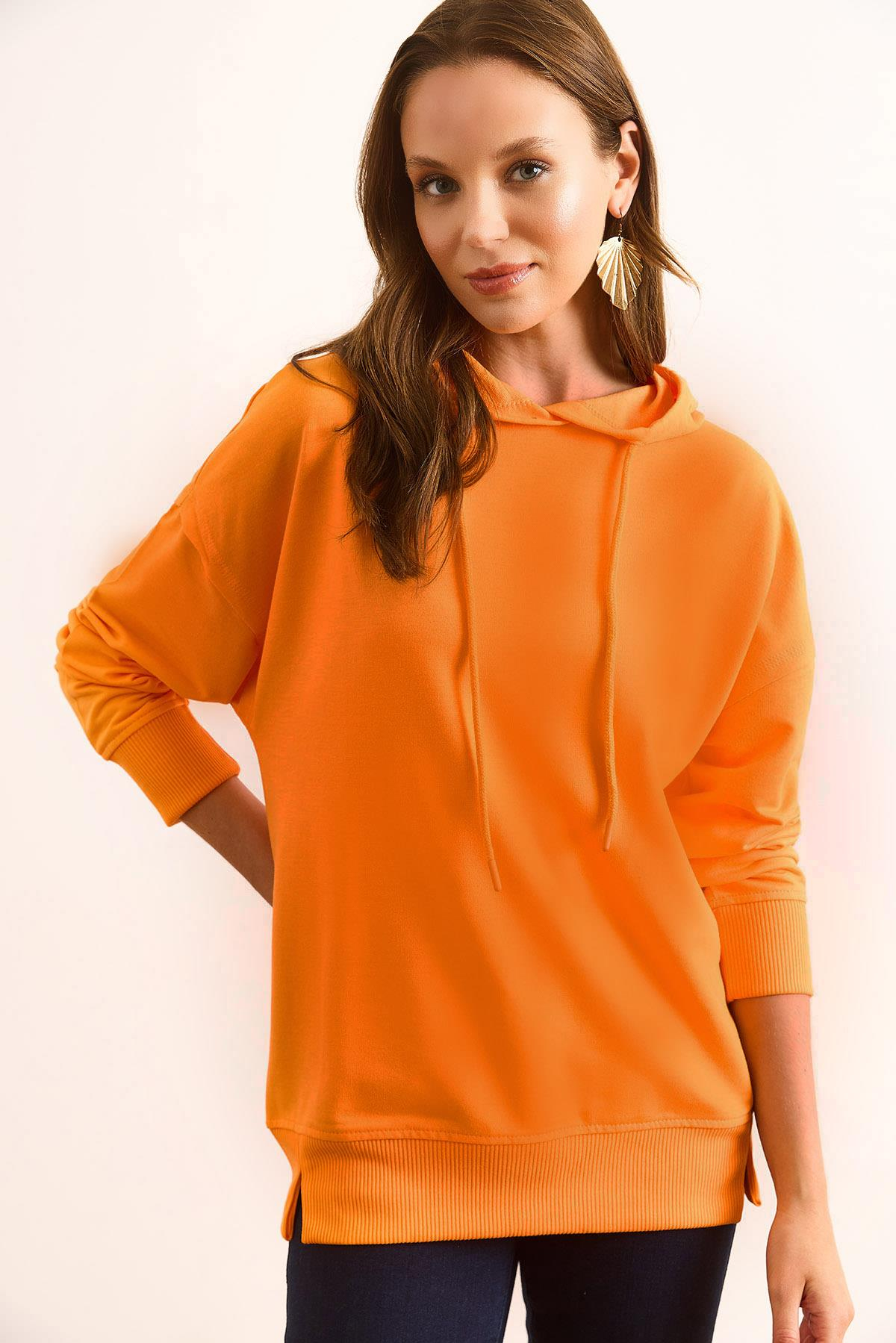 Kapüşonlu Yumuşak Dokulu 2 İp Sweatshirt Turuncu (SWT-19000719)