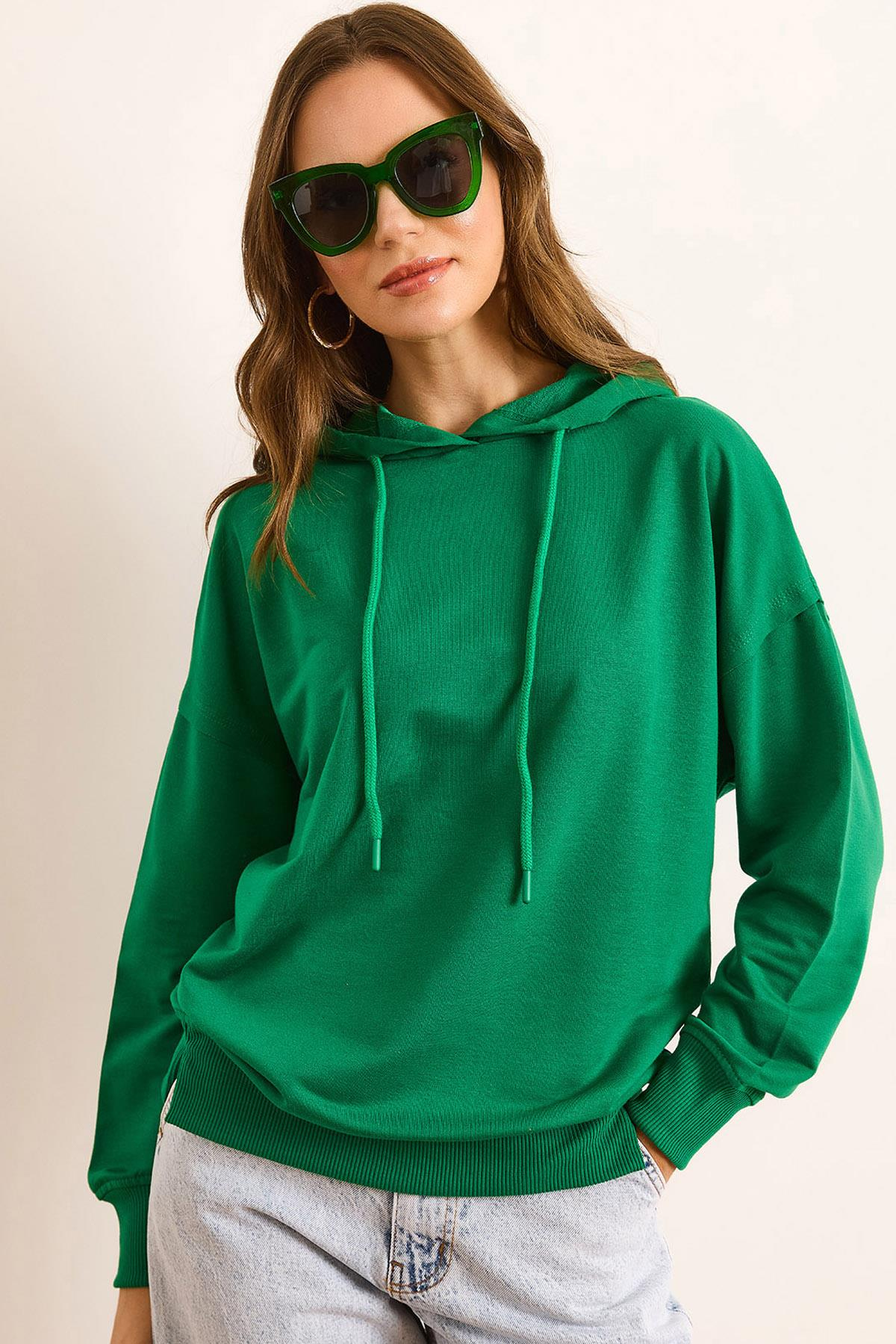 Kapüşonlu Yumuşak Dokulu 2 İp Sweatshirt Yeşil