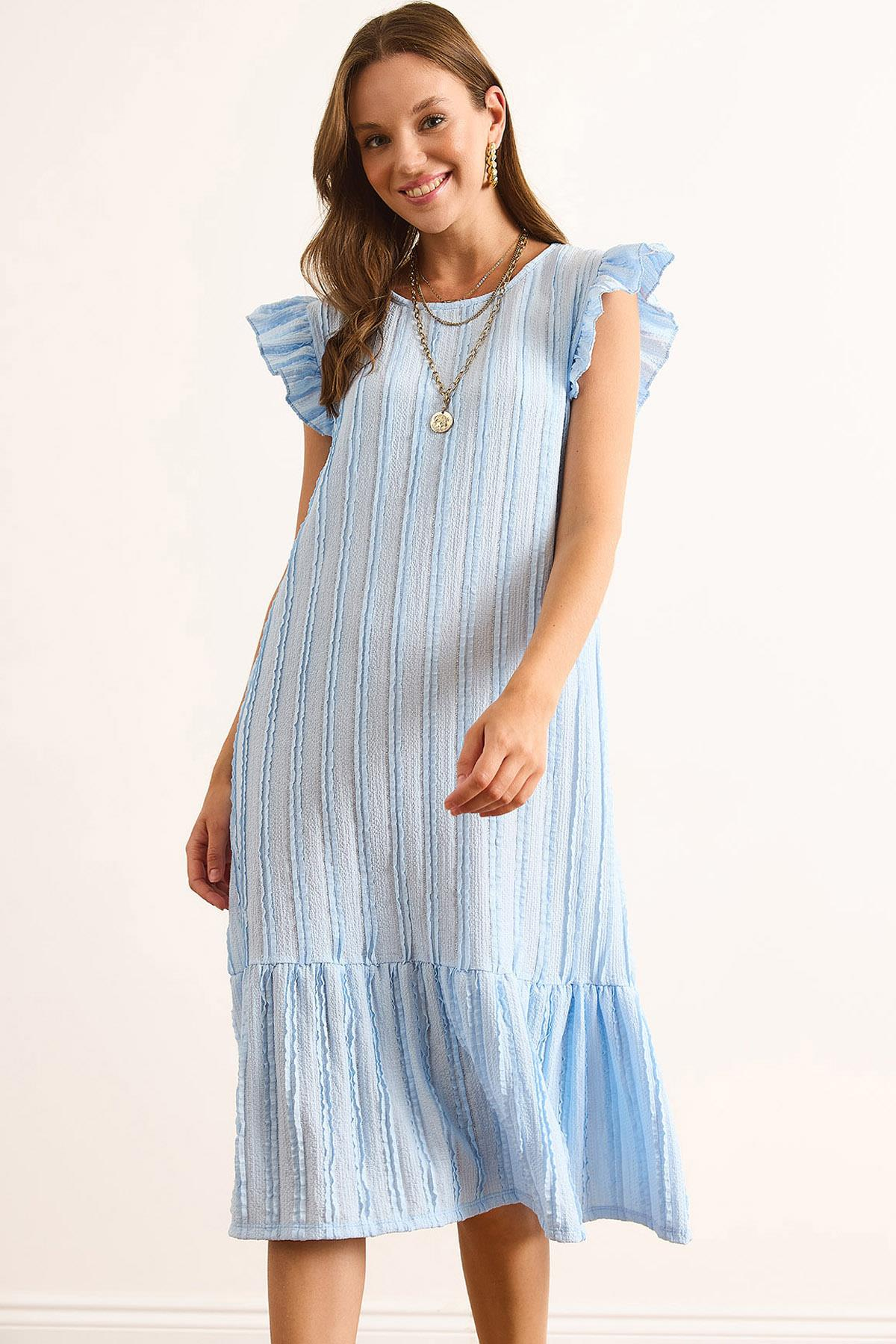 Kol Etek Fırfırlı Dokulu Midi Elbise Bebe Mavi (ELB-19002364)