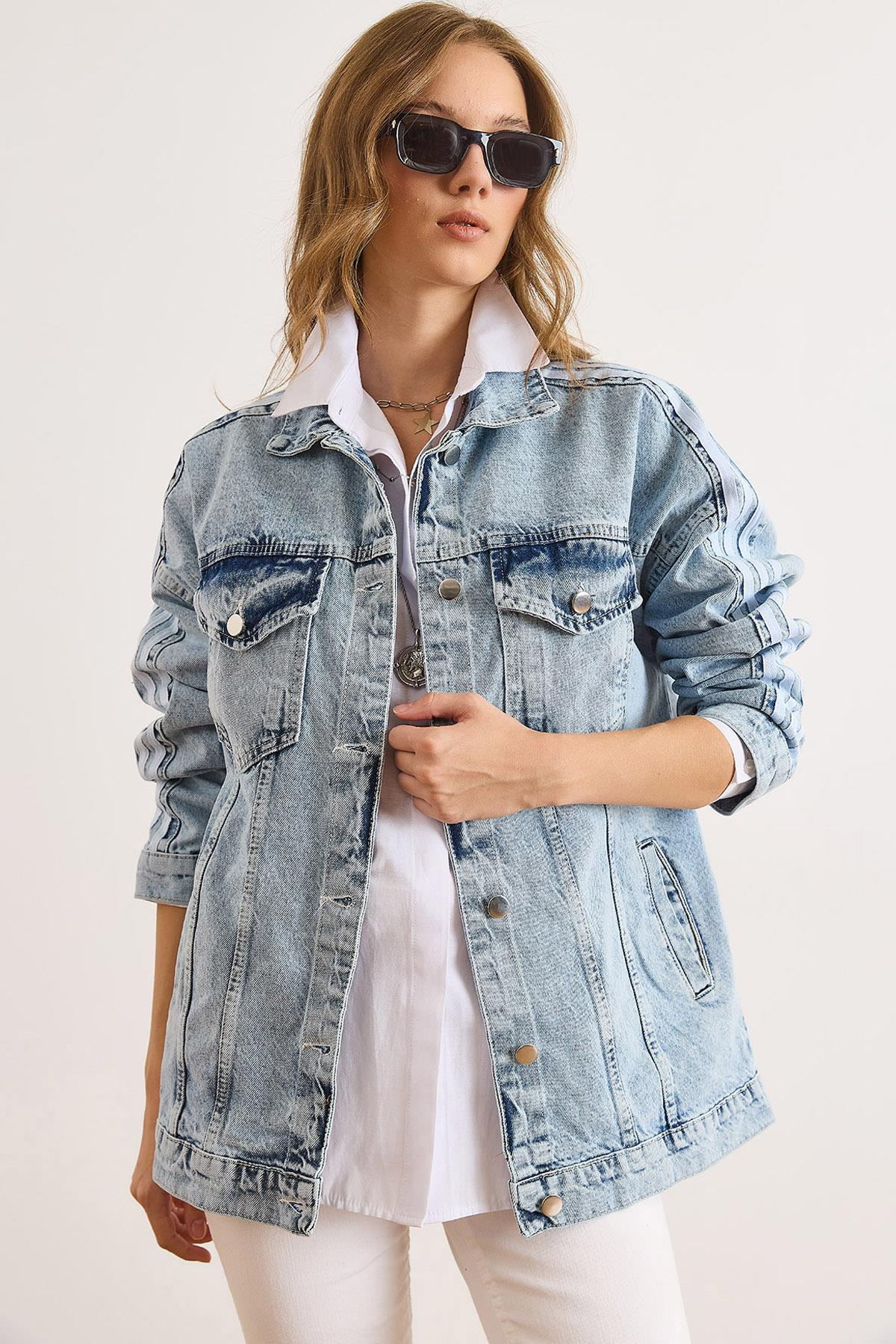 Kol Şeritli Rahat Kalıp Denim Ceket Açık Mavi (CKT-19000471)