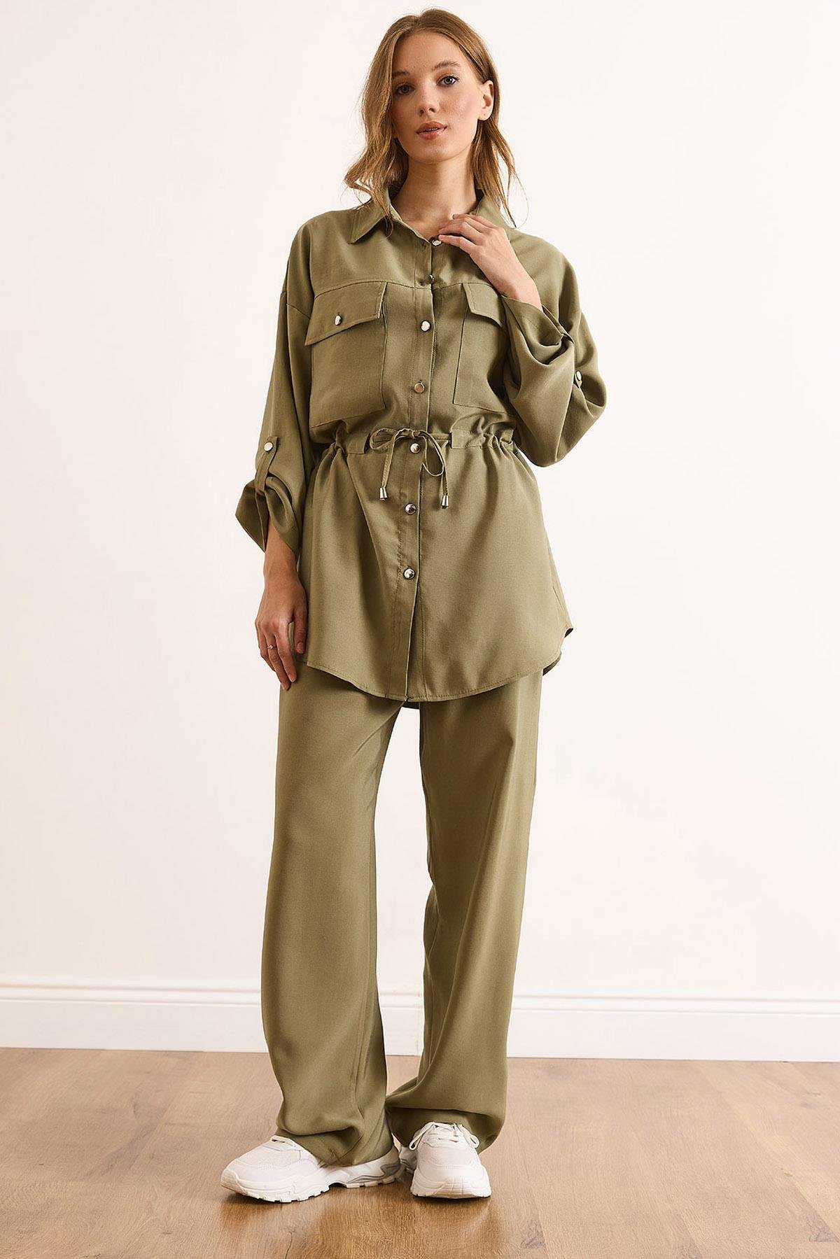 Lyocell Alt Üst Dökümlü Takım Haki (TKM-19000439)