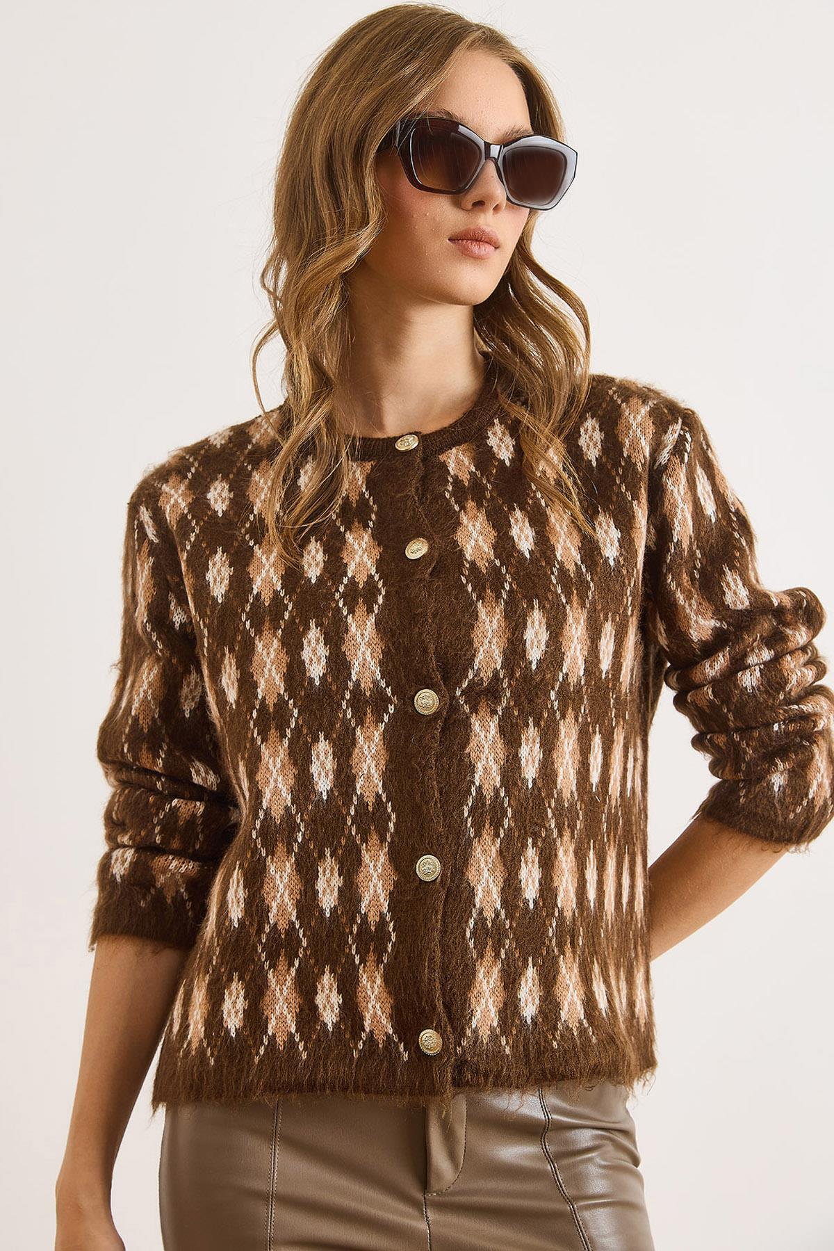 Minik Baklava Desenli Şardonlu Triko Hırka Kahverengi (HRK-19000411)