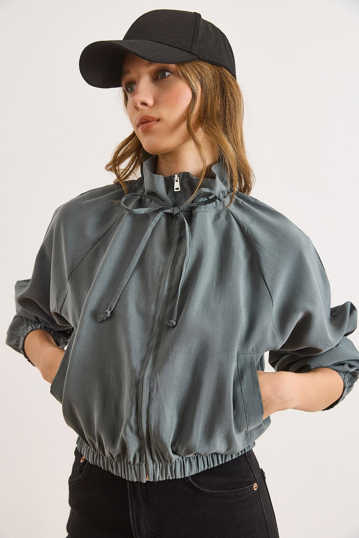 Modal Dik Yaka Fermuarlı Cepli Dökümlü Ceket Füme (CKT-19000475)