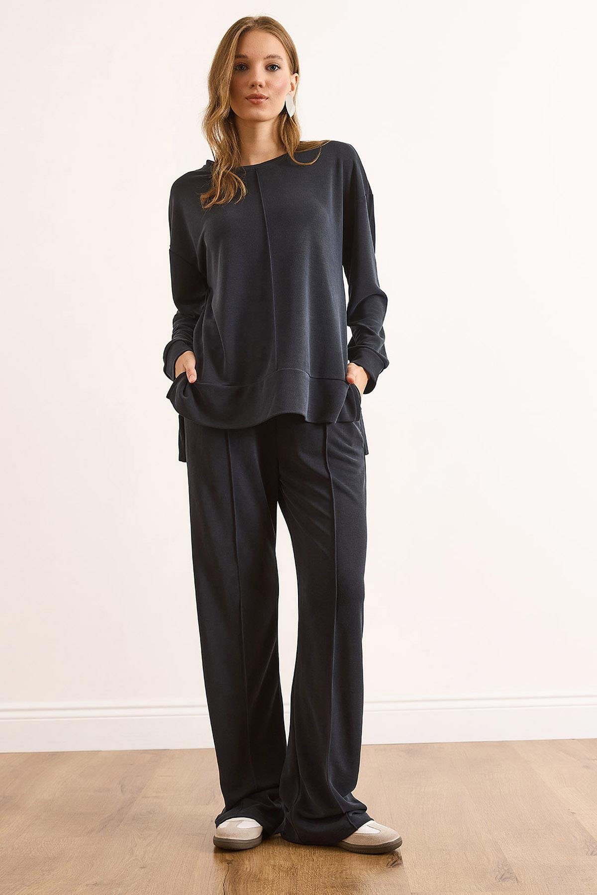 Modal Pike Yumuşak Dokulu Dökümlü Alt Üst Takım Antrasit (TKM-19000437)