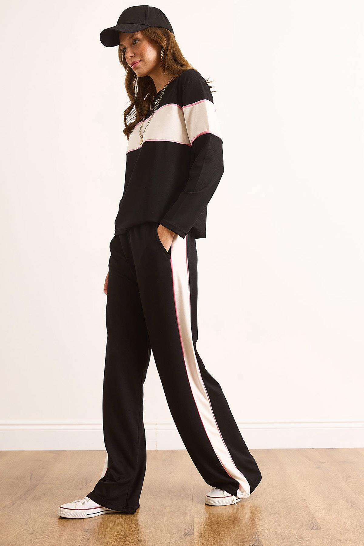 Modal Renk Bloklu Eşofman Takımı Siyah