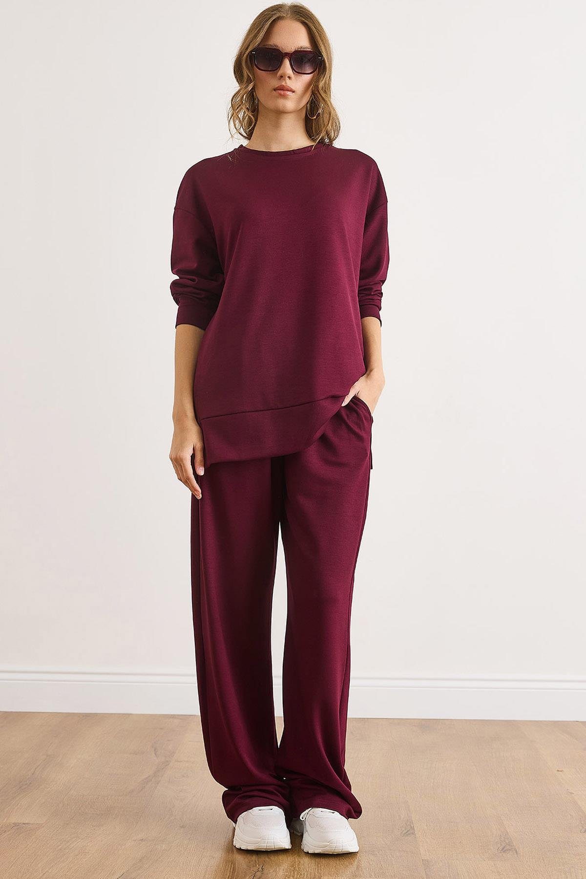 Modal Tuşeli Yumuşak Dokulu Alt Üst Takım Bordo (TKM-19000441)