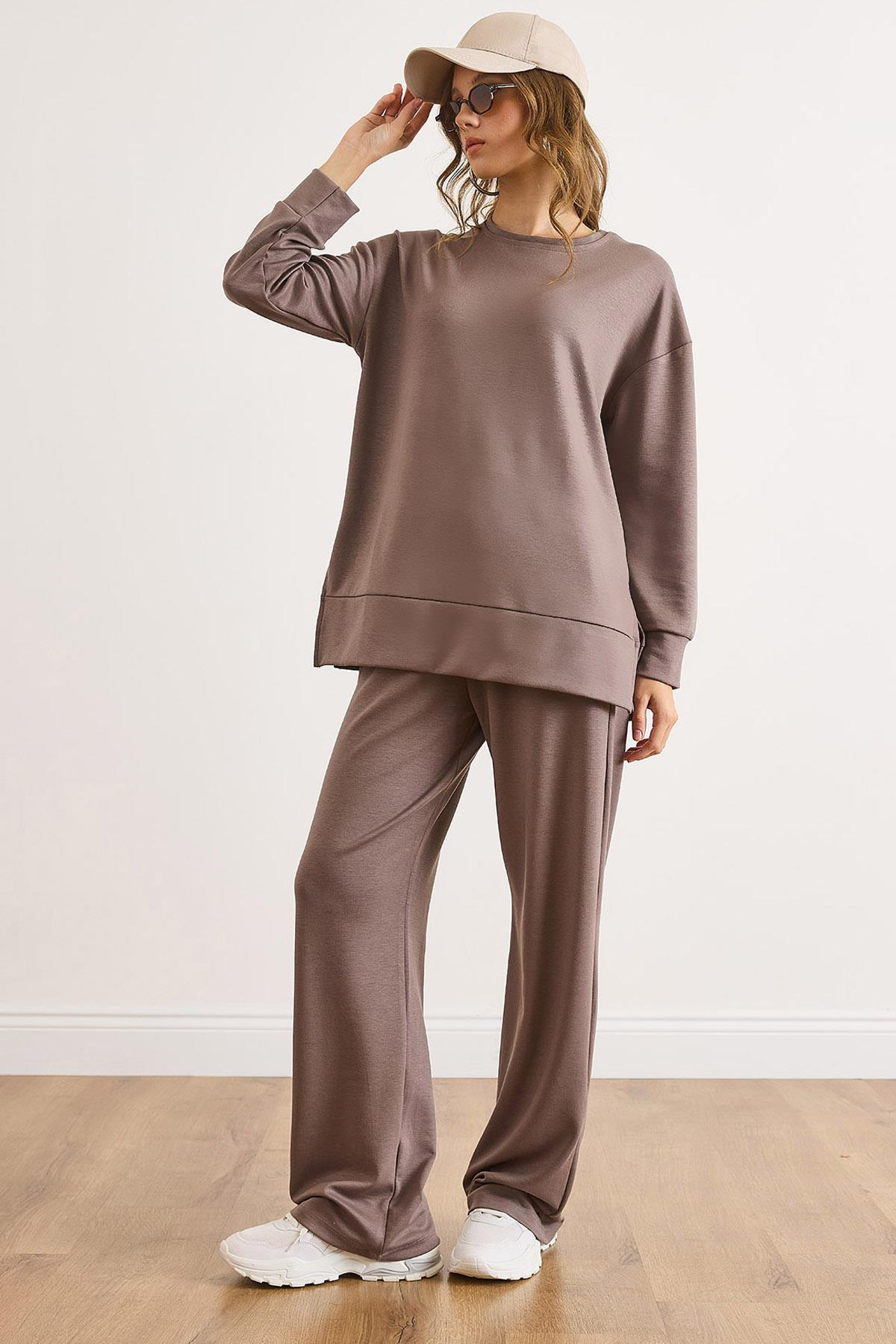 Modal Tuşeli Yumuşak Dokulu Alt Üst Takım Vizon