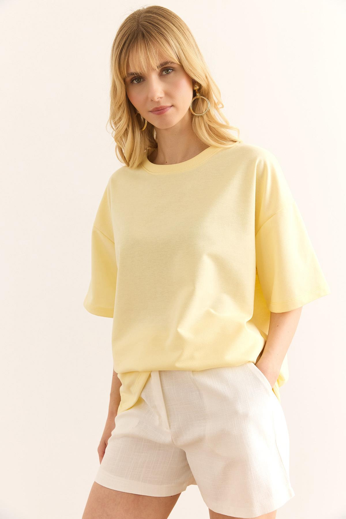 Ön Arka Baskılı 2 iplik Unisex Oversize Tişört Sarı (TSH-19000696)