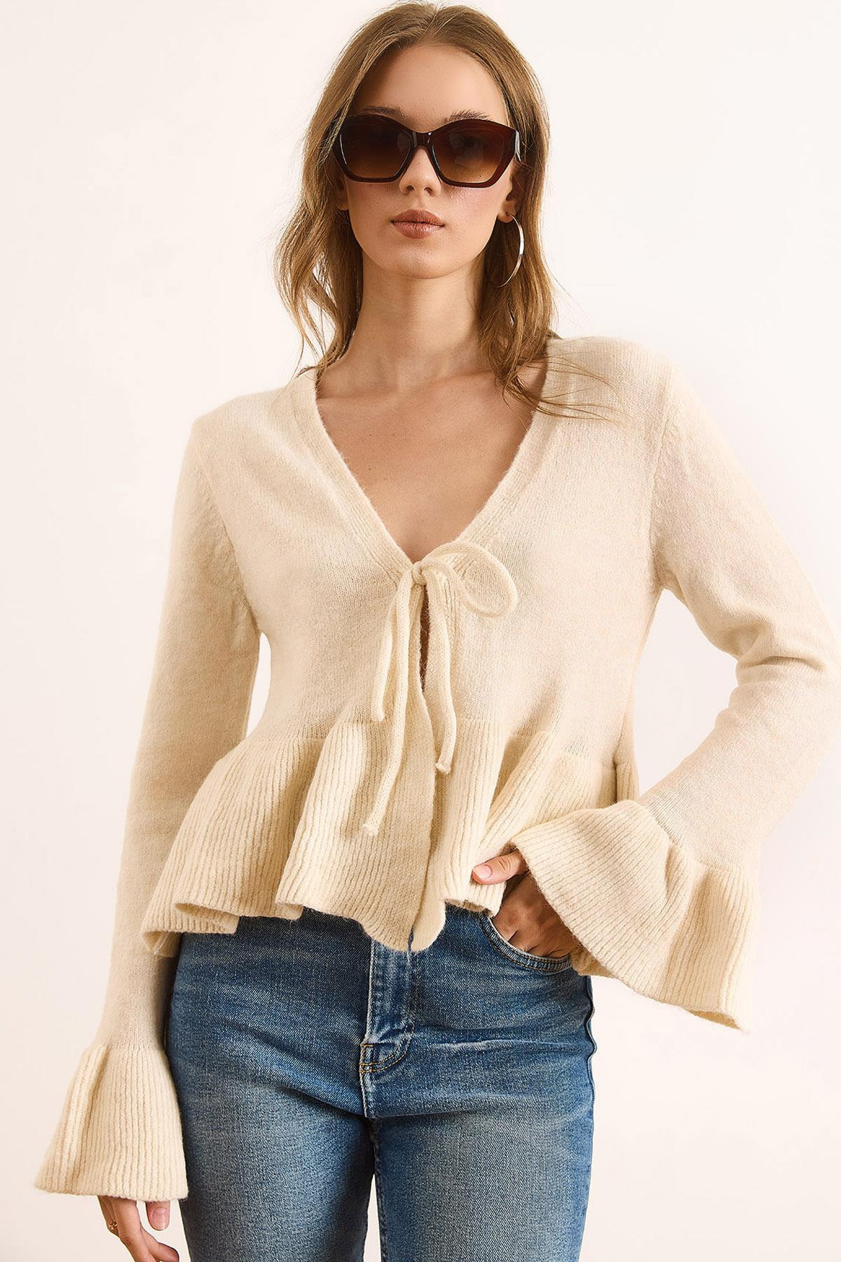 Önü Bağcıklı Yumuşak Dokulu İspanyol Kol Hırka Taş