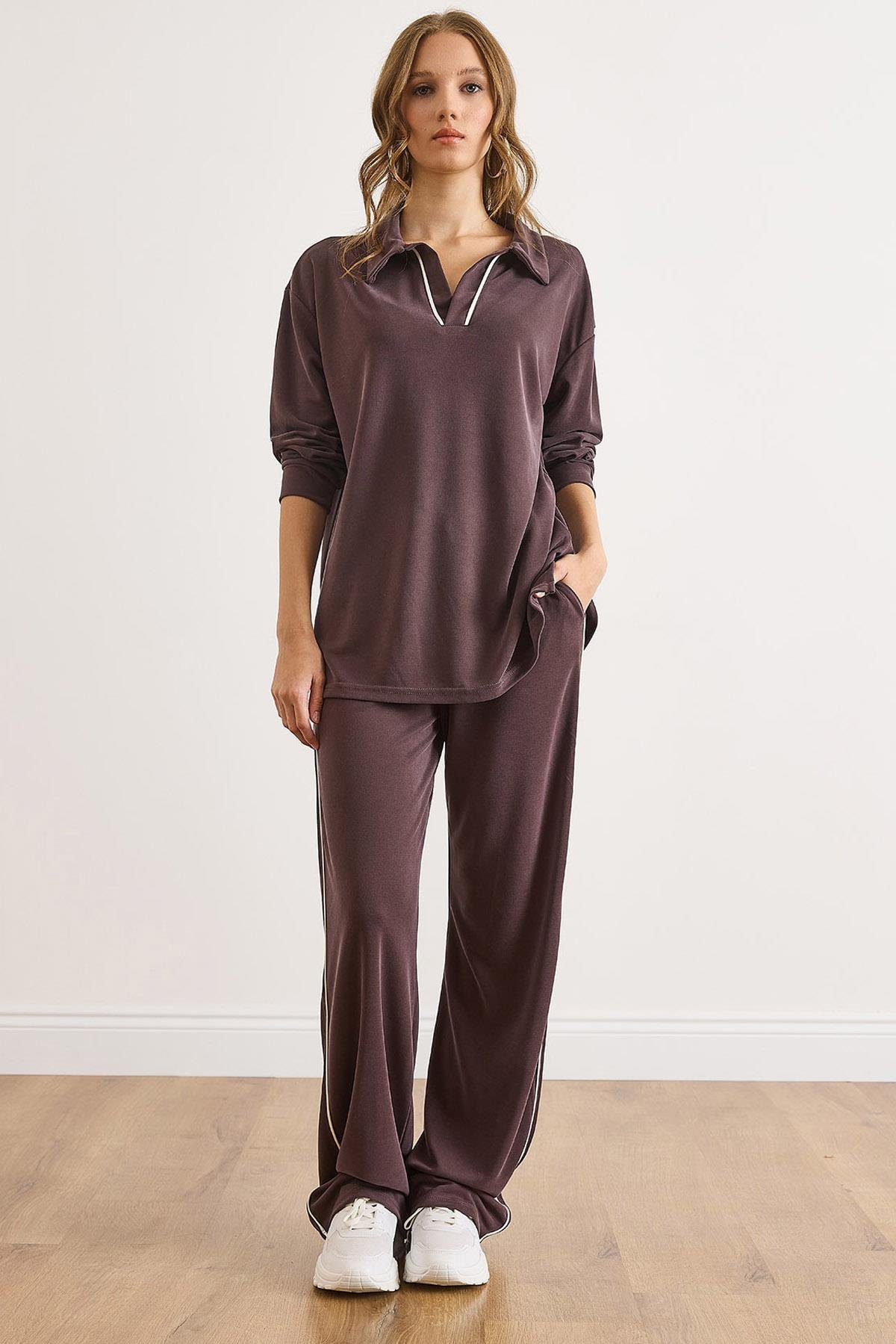 Pike Modal Biye Detaylı Dökümlü Alt Üst Takım Kahverengi
