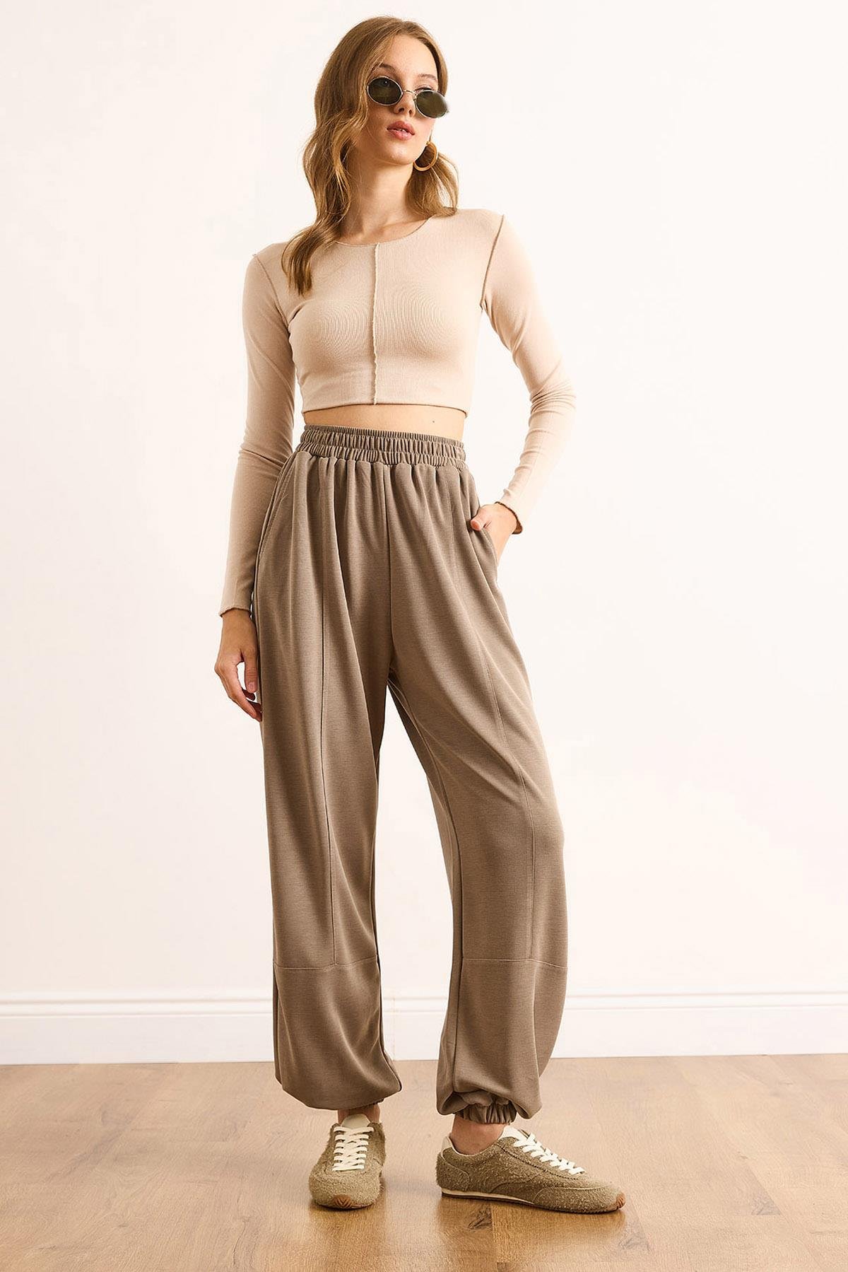 Pike Modal Dikiş Detaylı Jogger Eşofman Altı Vizon (EŞF-00000083)
