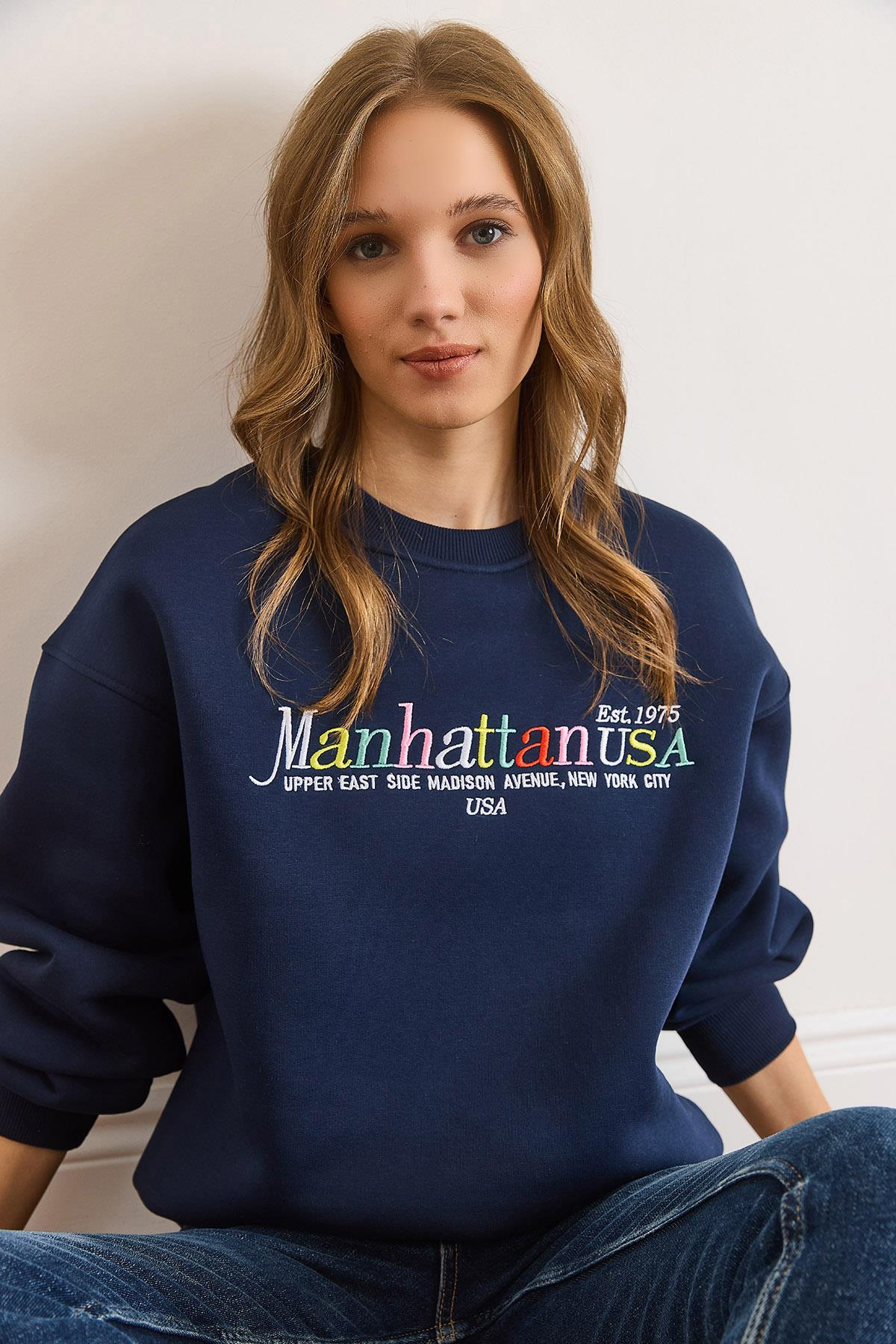 Renkli Nakışlı Şardonlu Sweatshirt Lacivert (SWT-19000754)