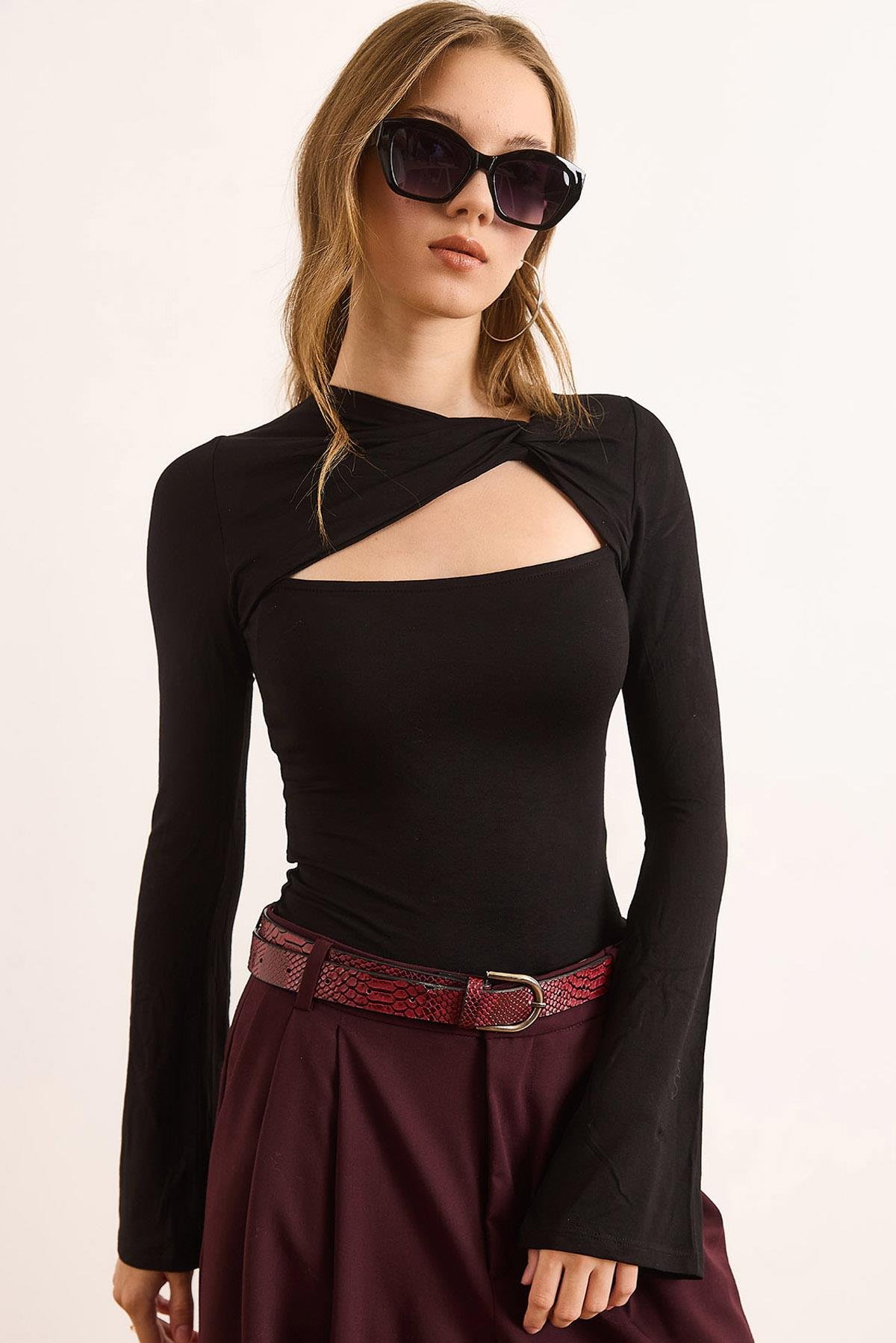 Roba Dekolteli Esnek Viskon Bluz Siyah (BLZ-19003108)