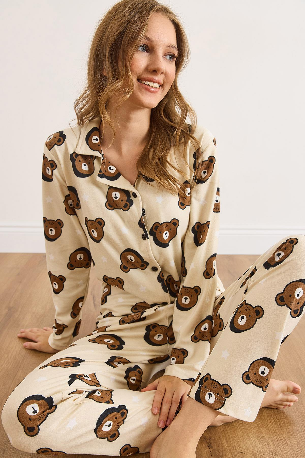 Süet Dokulu Pijama Takımı Taş Ayıcık (PJM-00000023)