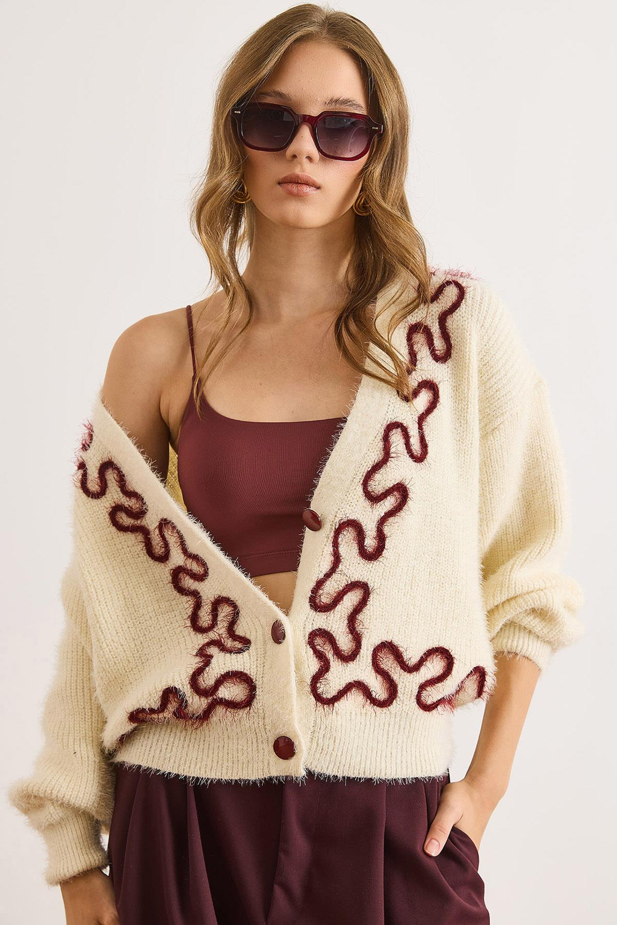 Süzene Detaylı Yumuşak Dokulu Sakal Hırka Ekru