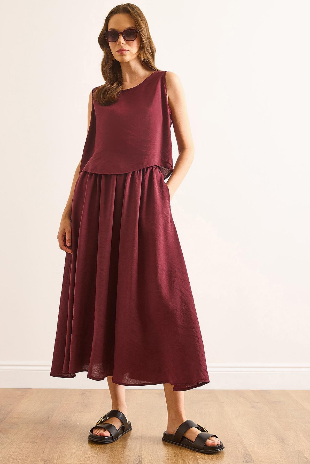 Üst Bluz Alt Cepli Etek Yumuşak Dokulu Takım Bordo (TKM-19000414)