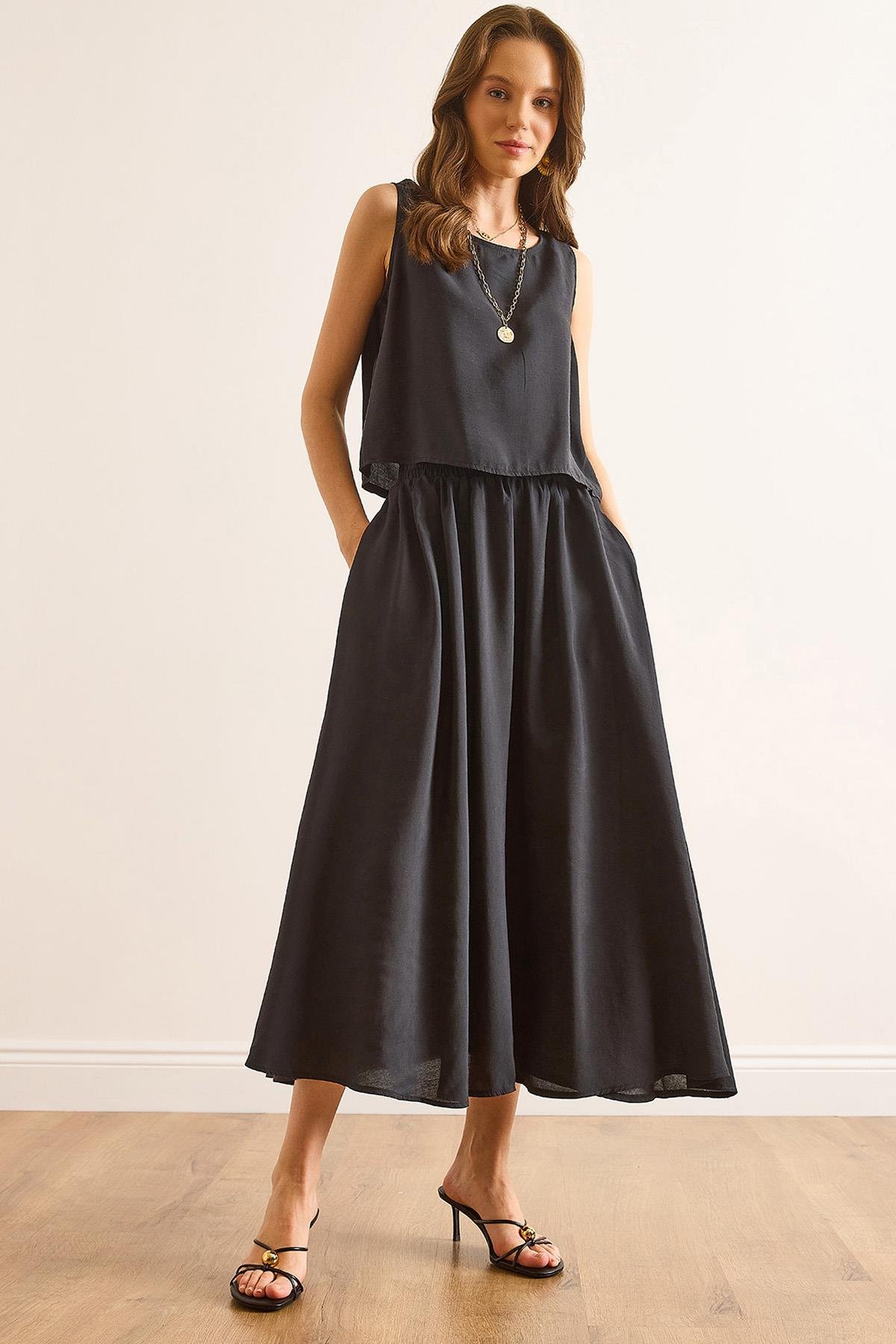 Üst Bluz Alt Cepli Etek Yumuşak Dokulu Takım Siyah (TKM-19000414)