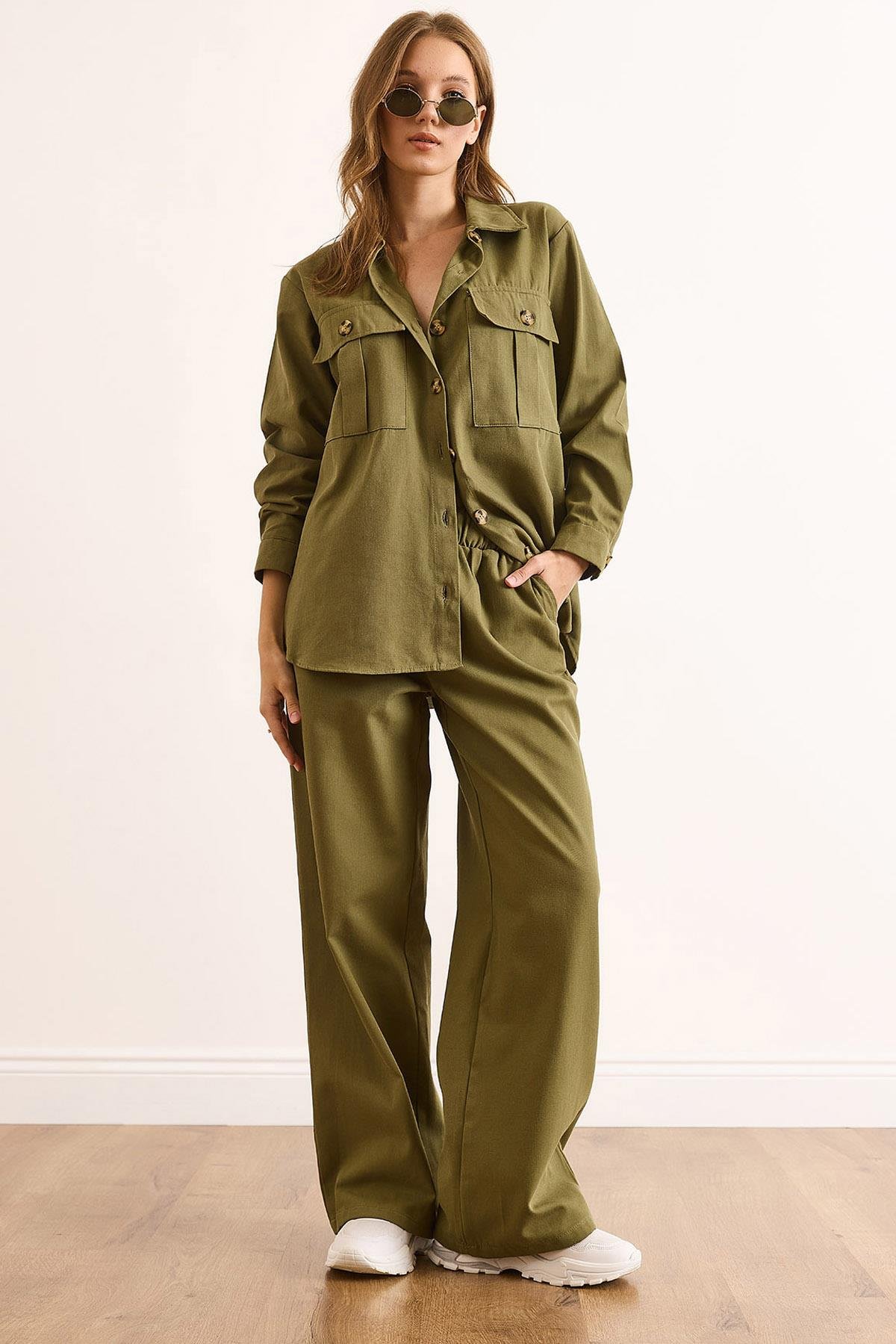 Üst Gömlek Alt Pantolon Gabardin Takım Haki (TKM-19000436)