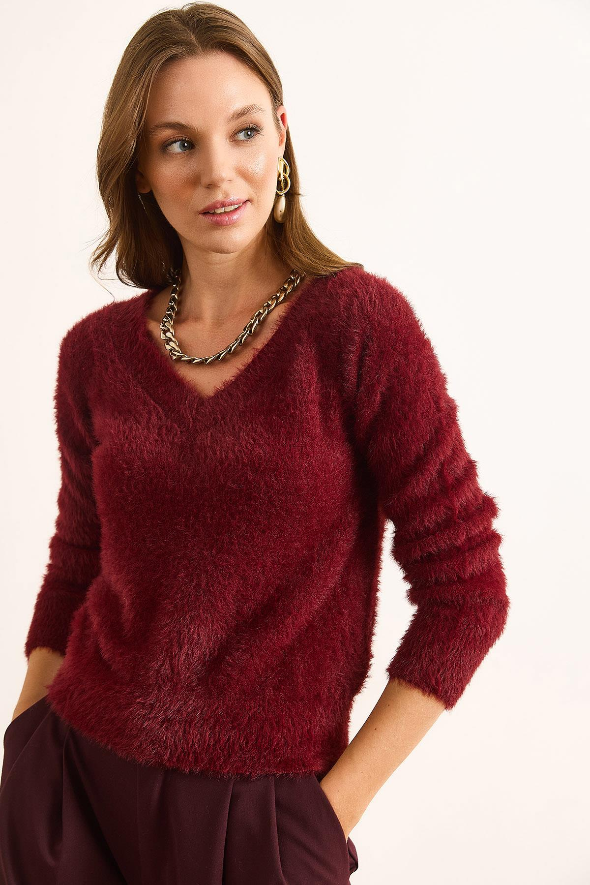 V Yaka Sakal Triko Kazak Bordo (KZK-19000978)